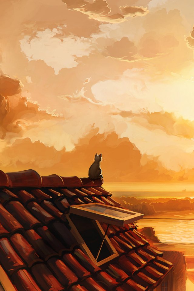 Wallpaper: cat on the roof, sunset, orange - 640x960