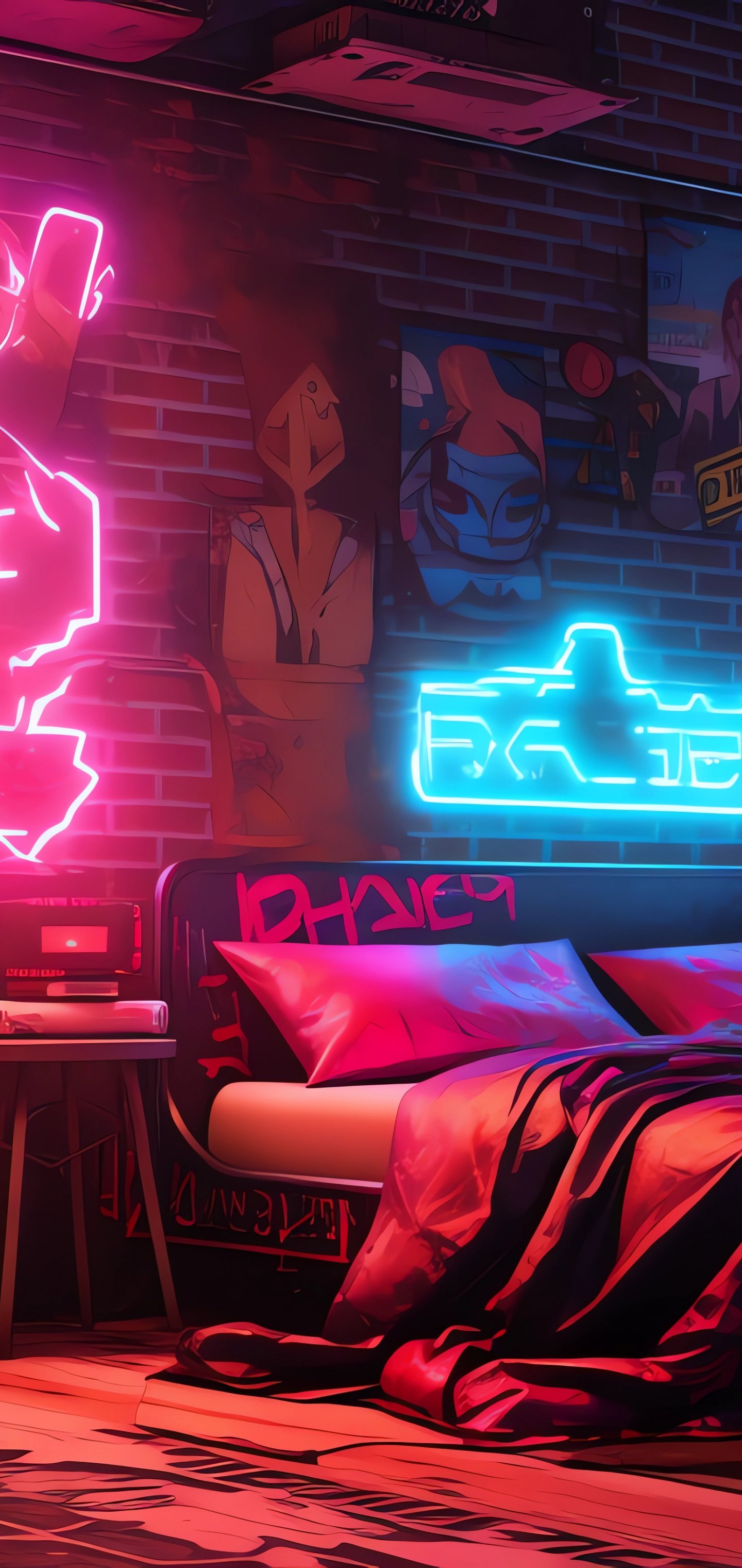 Wallpaper: neon, bed, room, cyberpunk - 1440x3040