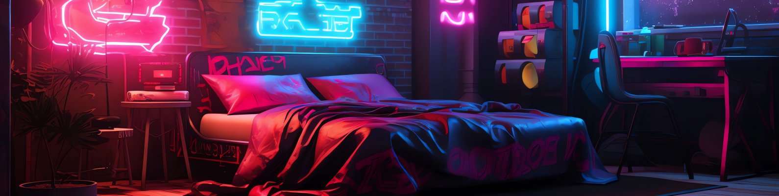 Wallpaper: neon, bed, room, cyberpunk - 1590x400