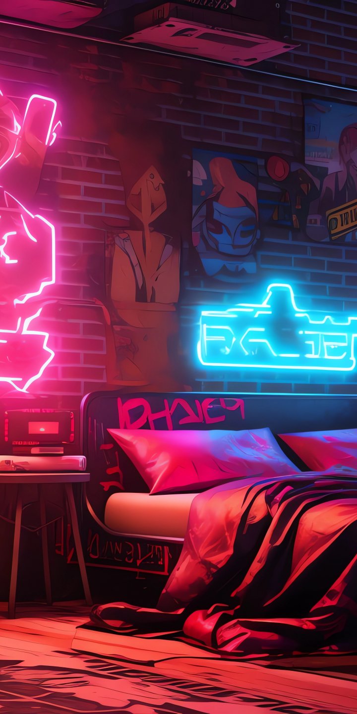 Wallpaper: neon, bed, room, cyberpunk - 720x1440