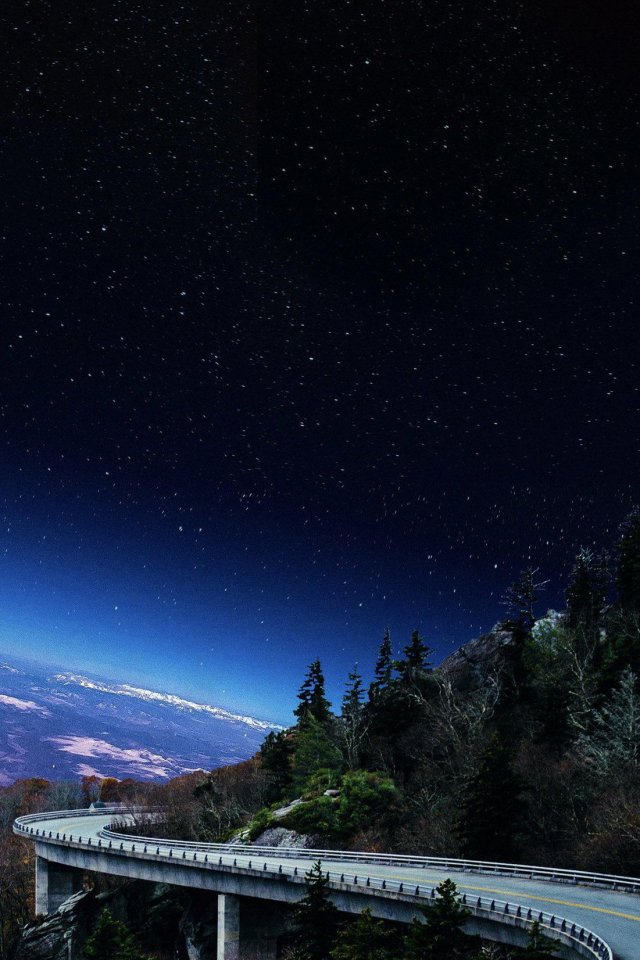 road, night, starry sky Wallpaper 640x960