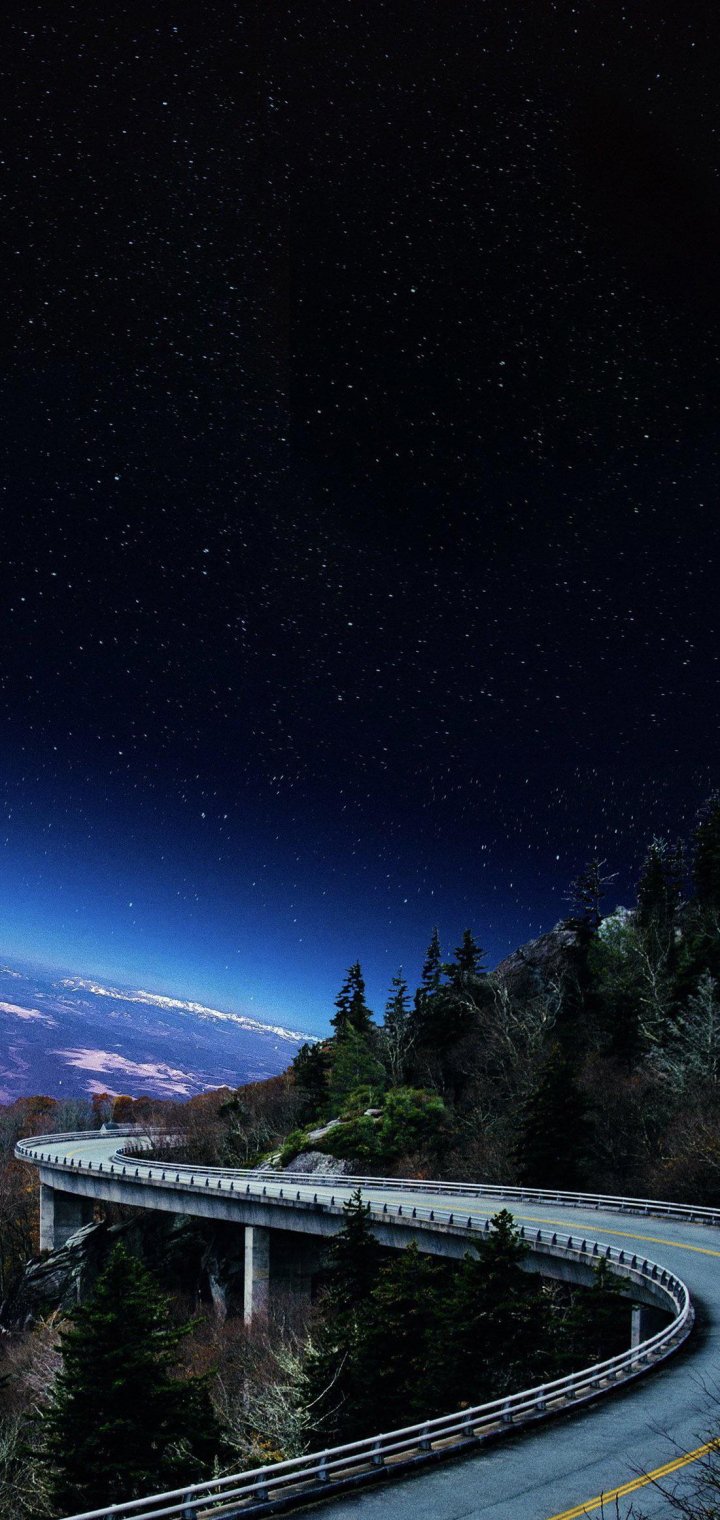 road, night, starry sky Wallpaper 720x1520