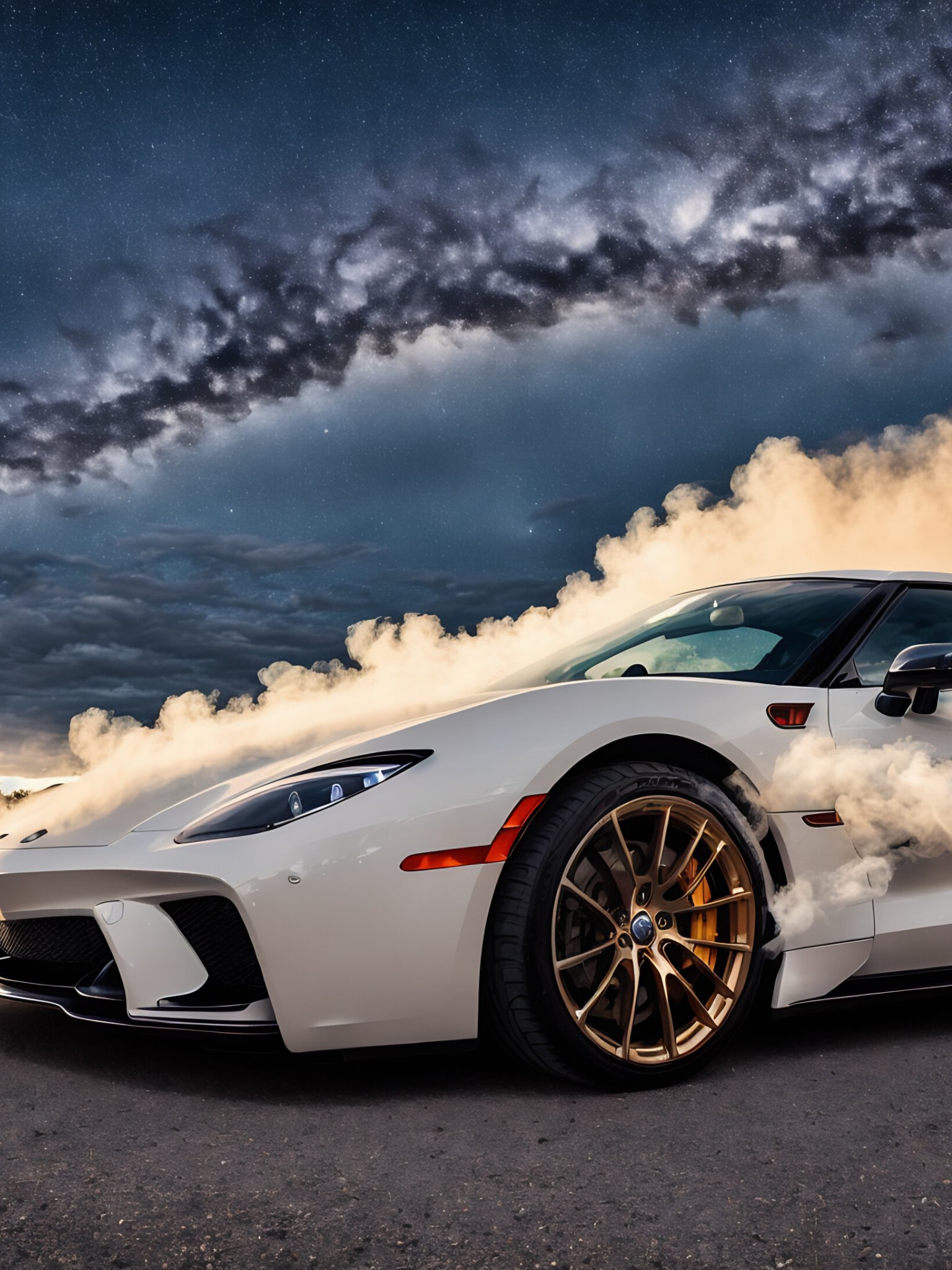 Wallpaper: sports car, smoke from under the wheels - 1536x2048