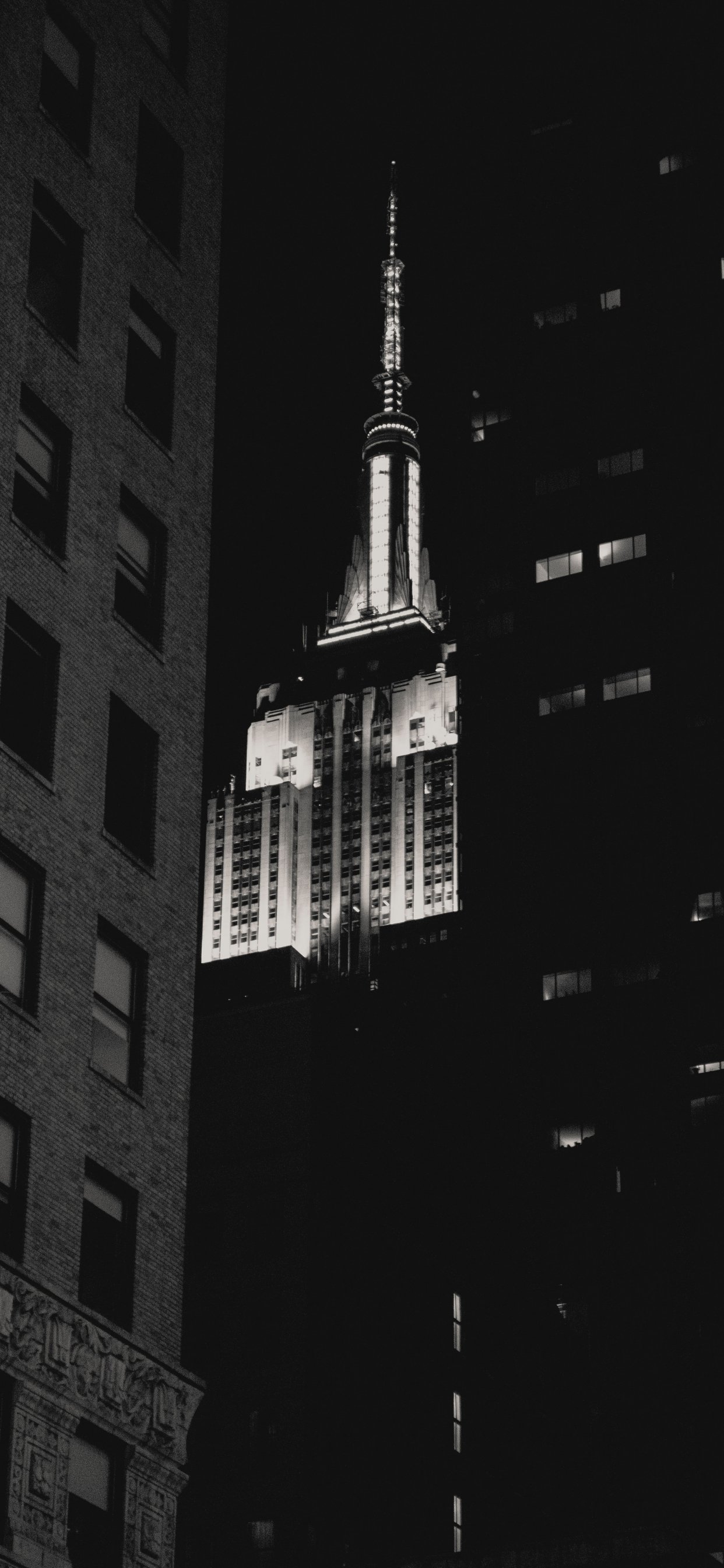 Wallpaper: Empire State Building, New York, black and white - 1242x2688