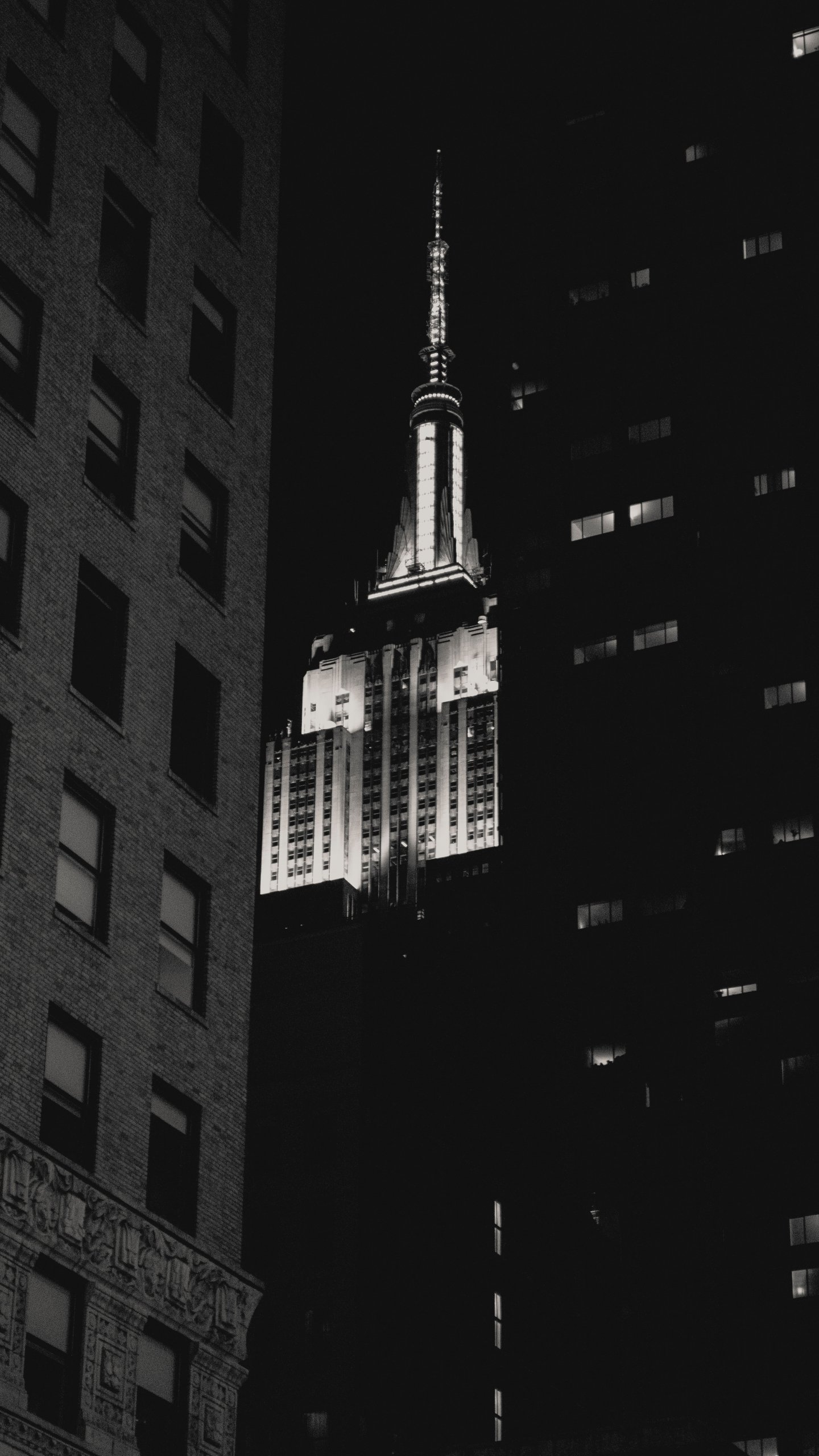 Wallpaper: Empire State Building, New York, black and white - 1440x2560