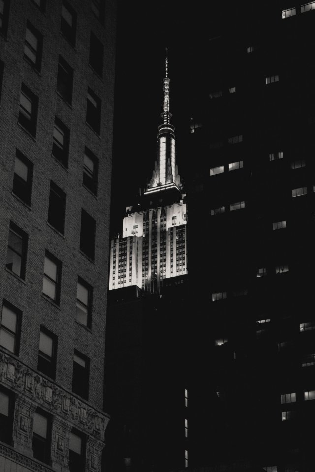 Wallpaper: Empire State Building, New York, black and white - 640x960
