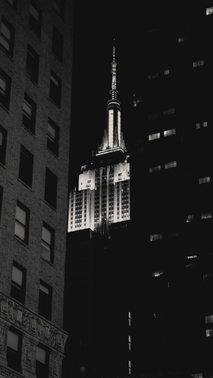 Wallpaper: Empire State Building, New York, black and white - 720x1280
