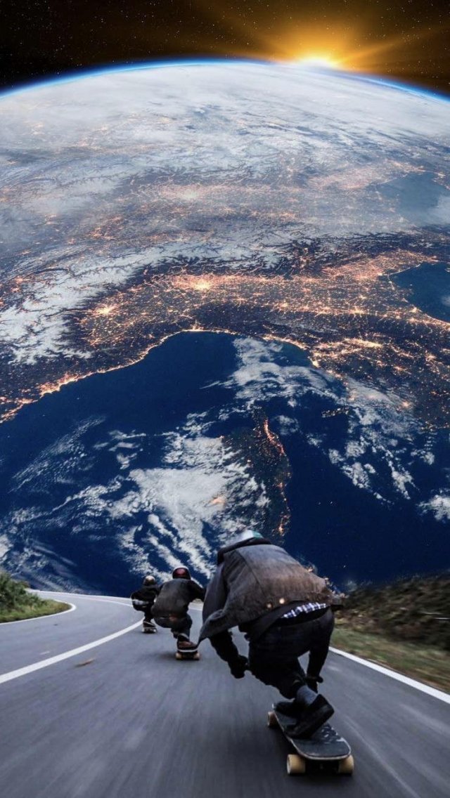 Wallpaper: skateboarders, planet earth, road - 640x1136