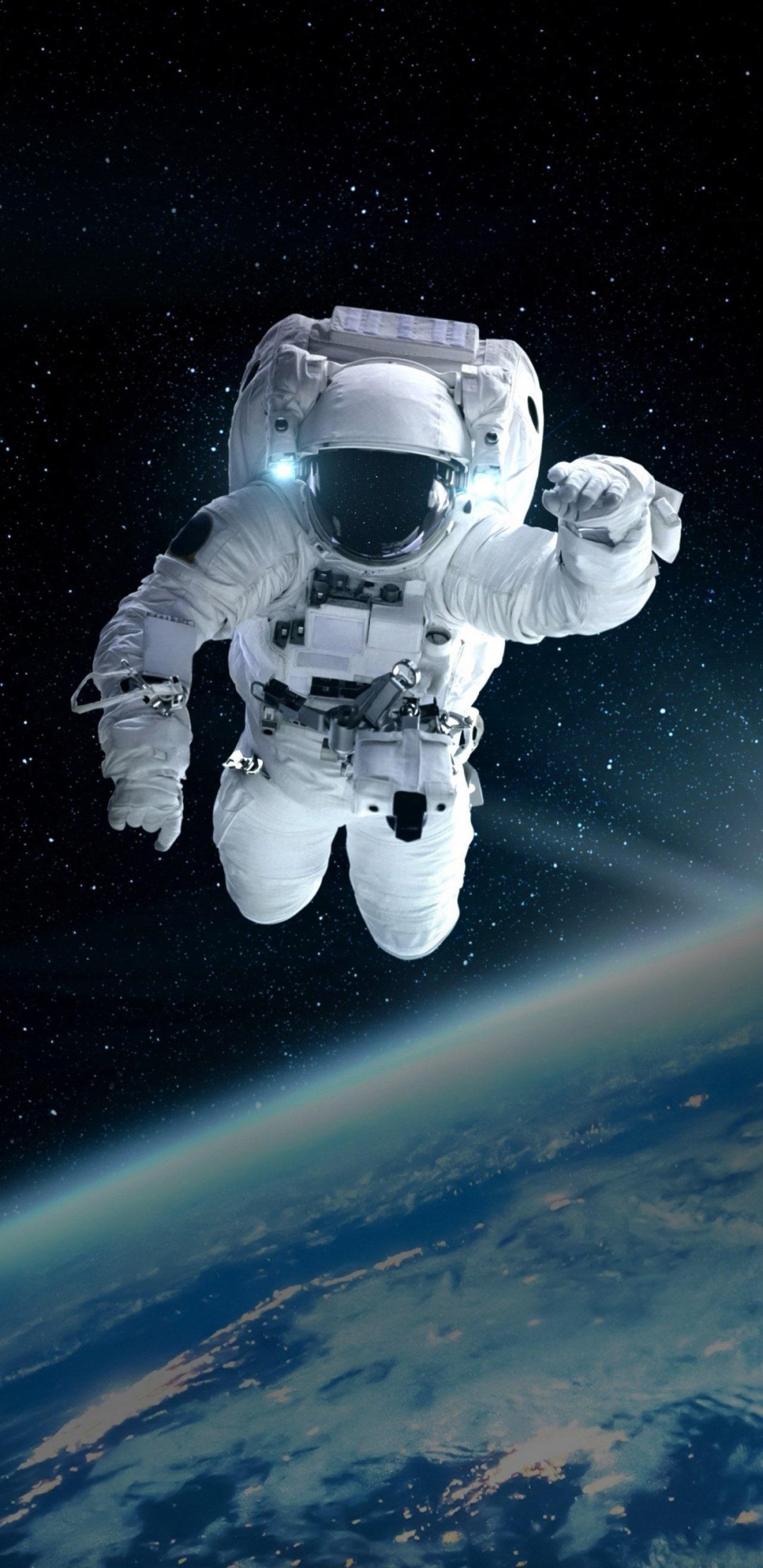 Wallpaper: cosmonaut, open space, planet earth - 1080x2220