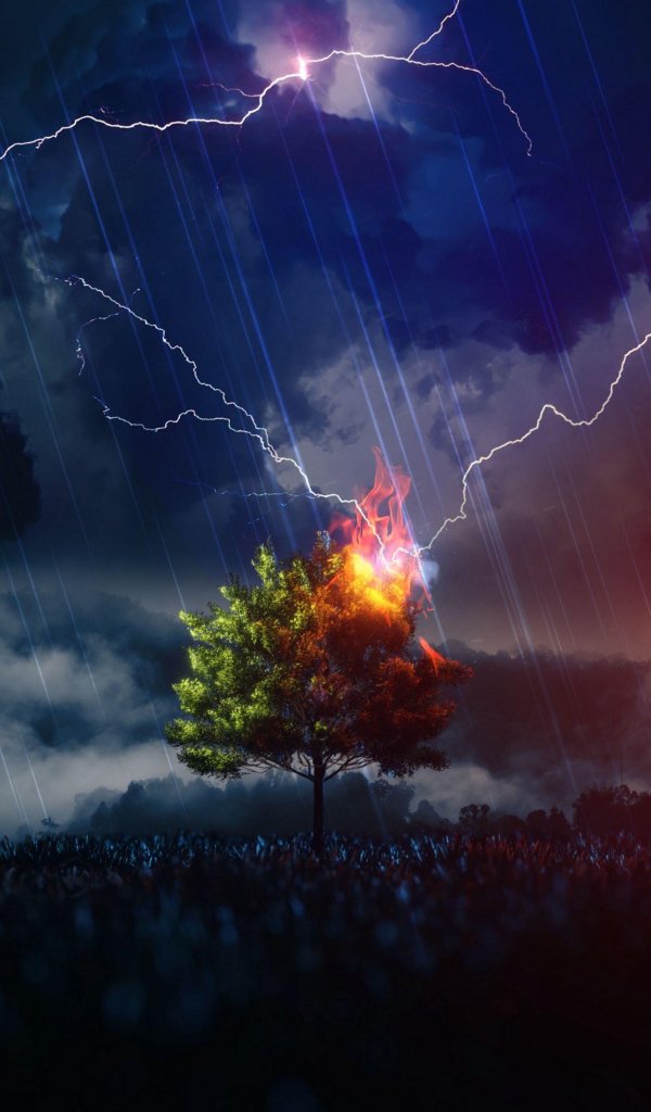 Wallpaper: lightning, tree, night, thunderstorm - 600x1024