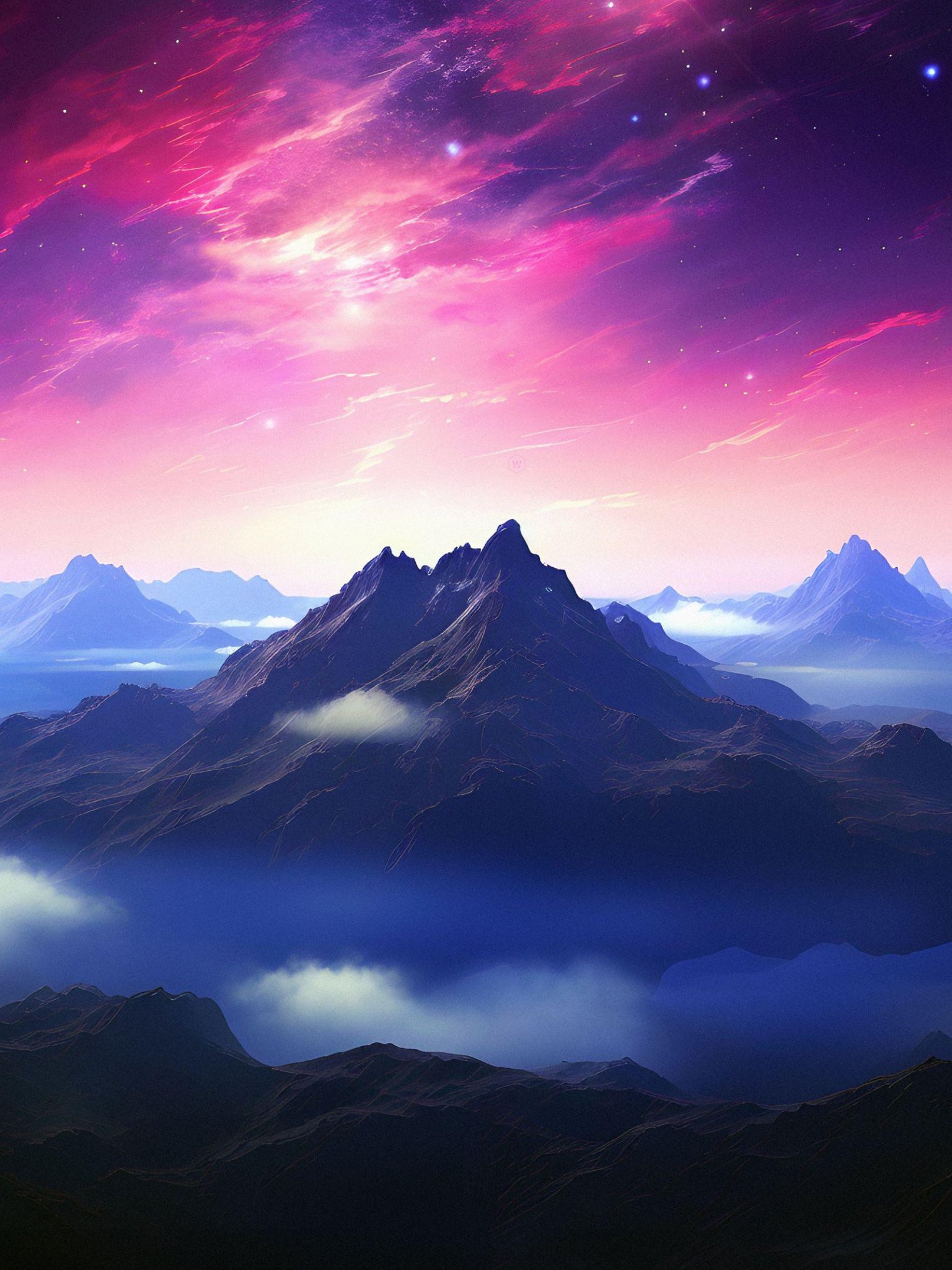 mountain, sky, pink Wallpaper 1536x2048