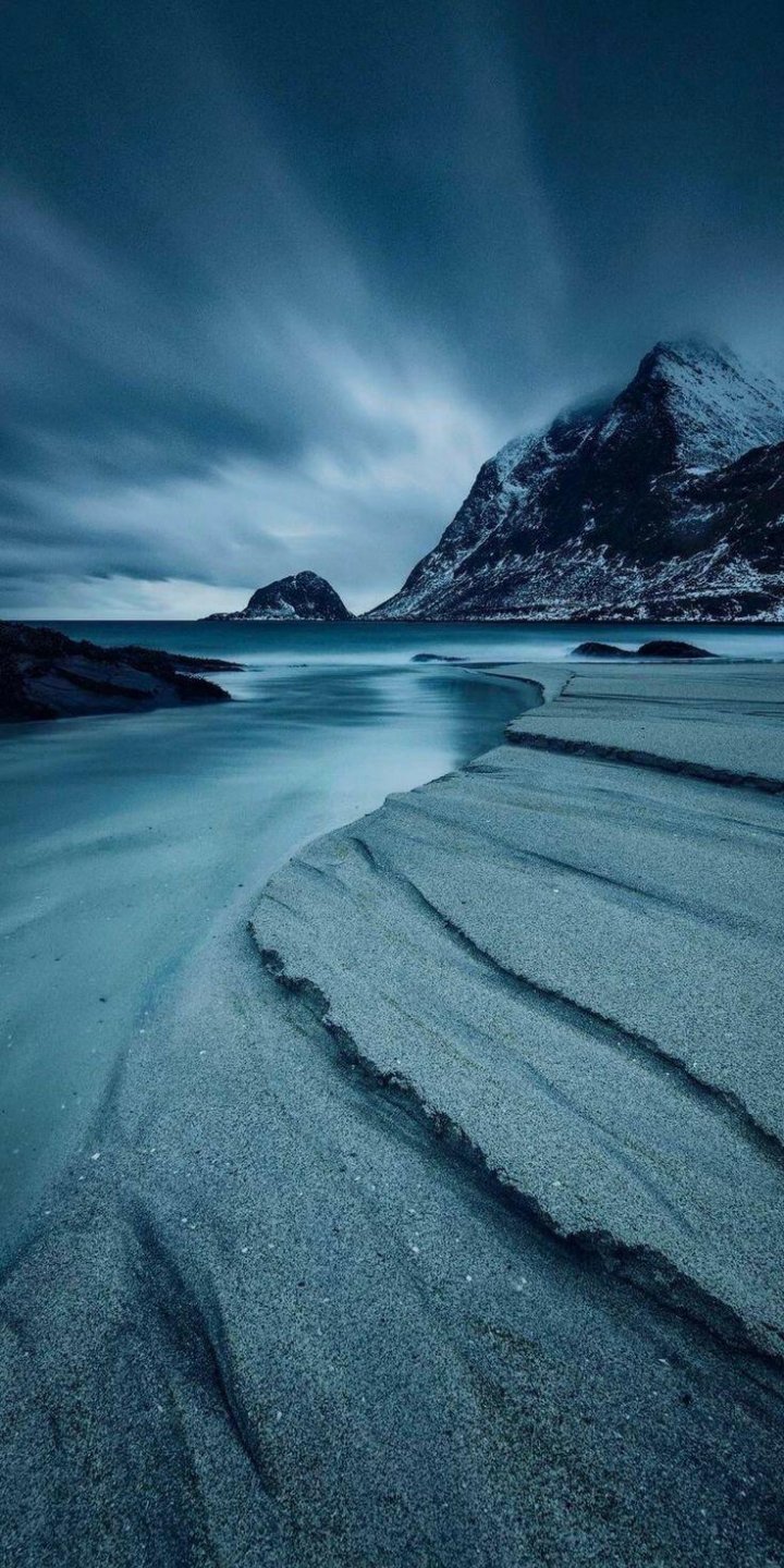 Wallpaper: landscape, sea, mountains, blue - 720x1440