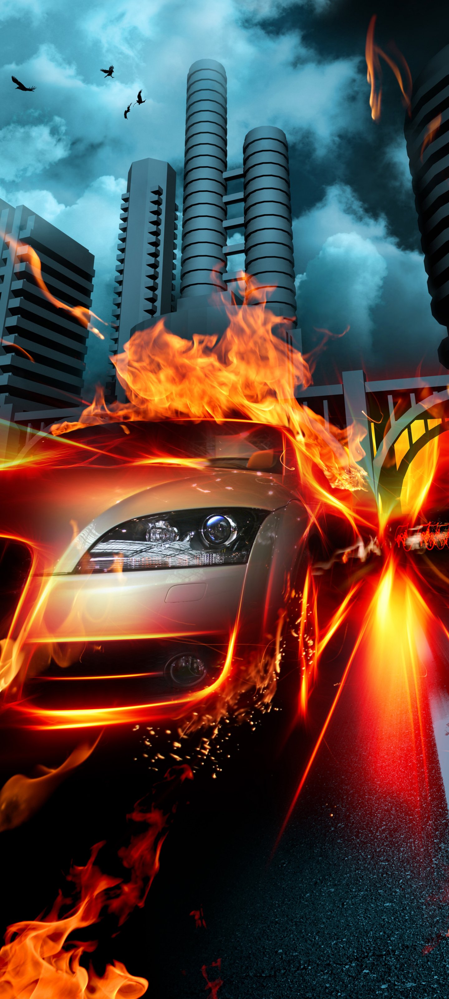 Wallpaper: fire, flame, race - 1440x3200