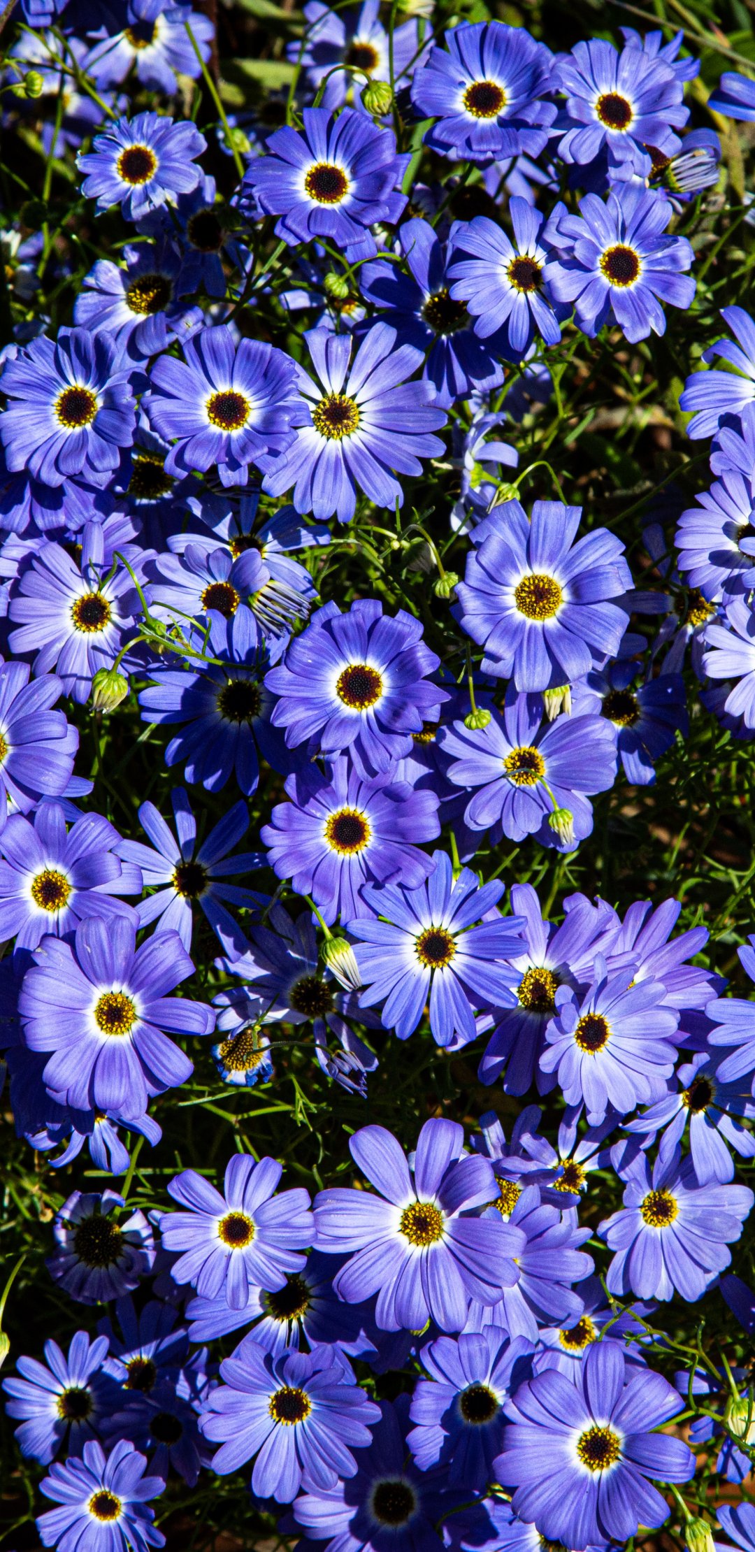 Wallpaper: Brachikoma, blue flowers, flower bed - 1080x2220