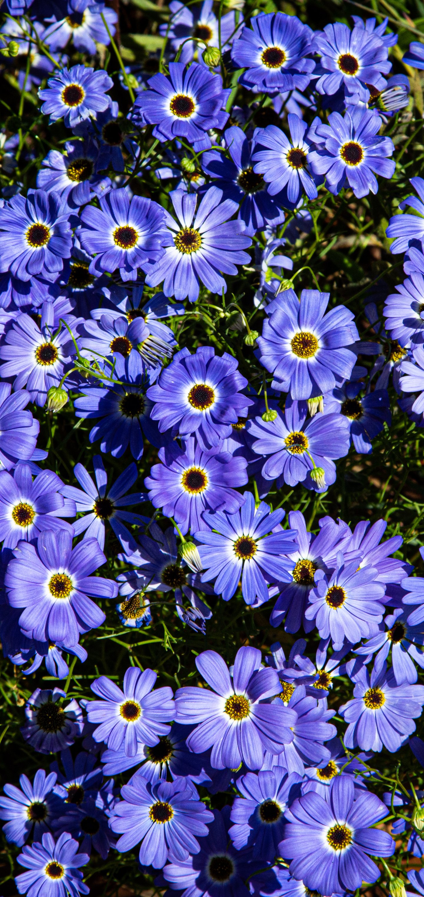 Wallpaper: Brachikoma, blue flowers, flower bed - 1440x3040