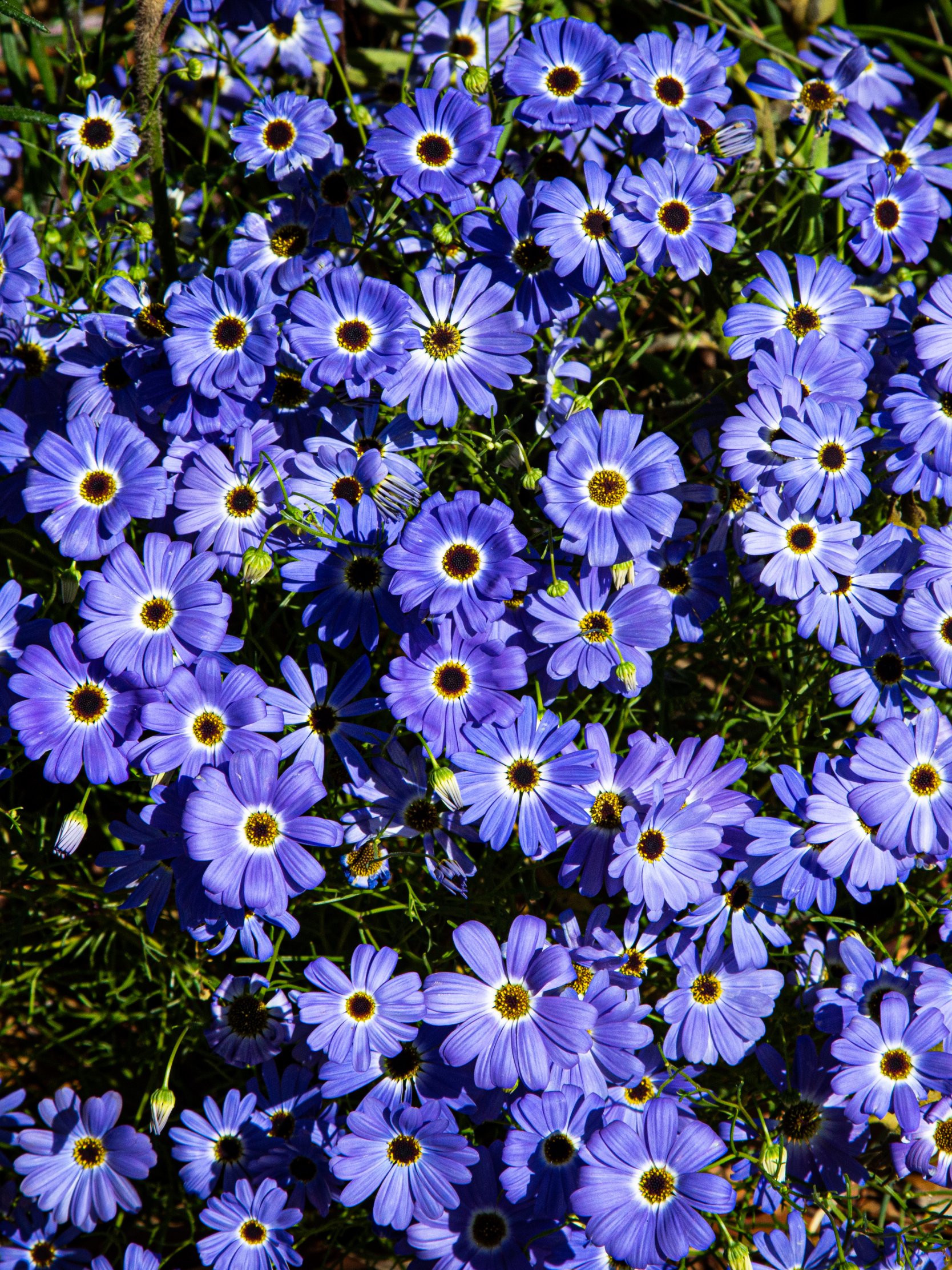 Wallpaper: Brachikoma, blue flowers, flower bed - 1668x2224