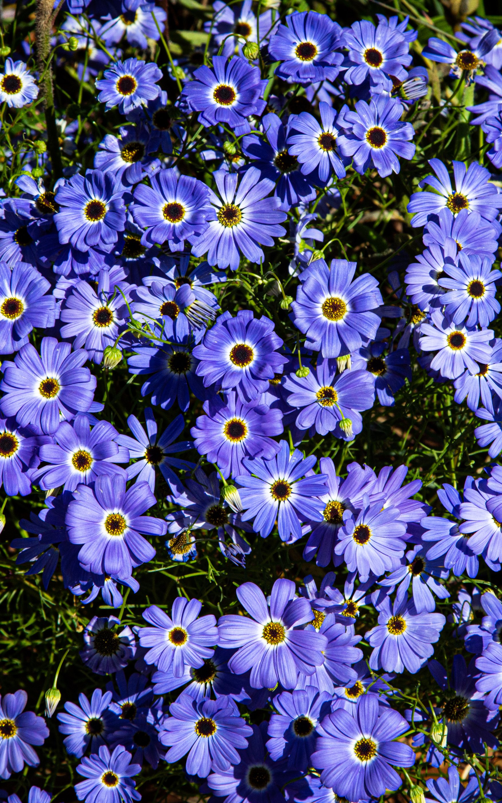 Wallpaper: Brachikoma, blue flowers, flower bed - 1752x2800