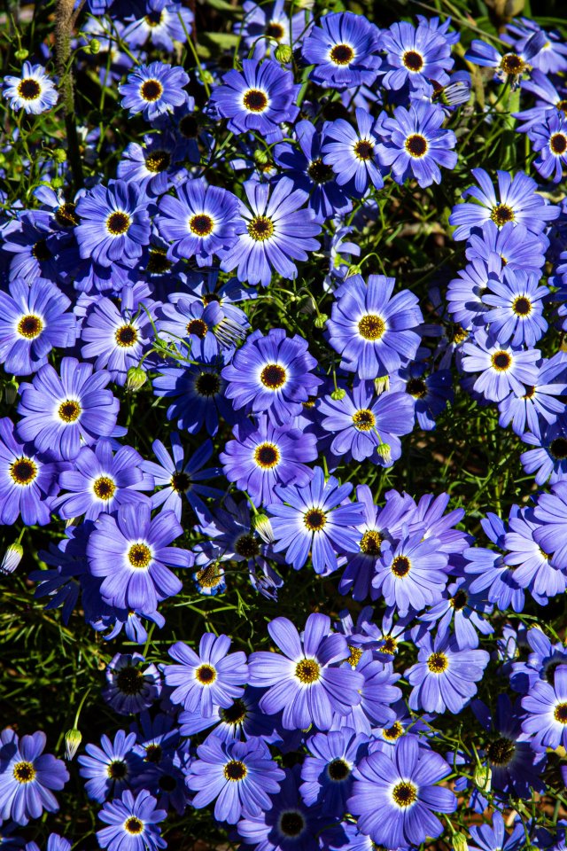 Wallpaper: Brachikoma, blue flowers, flower bed - 640x960