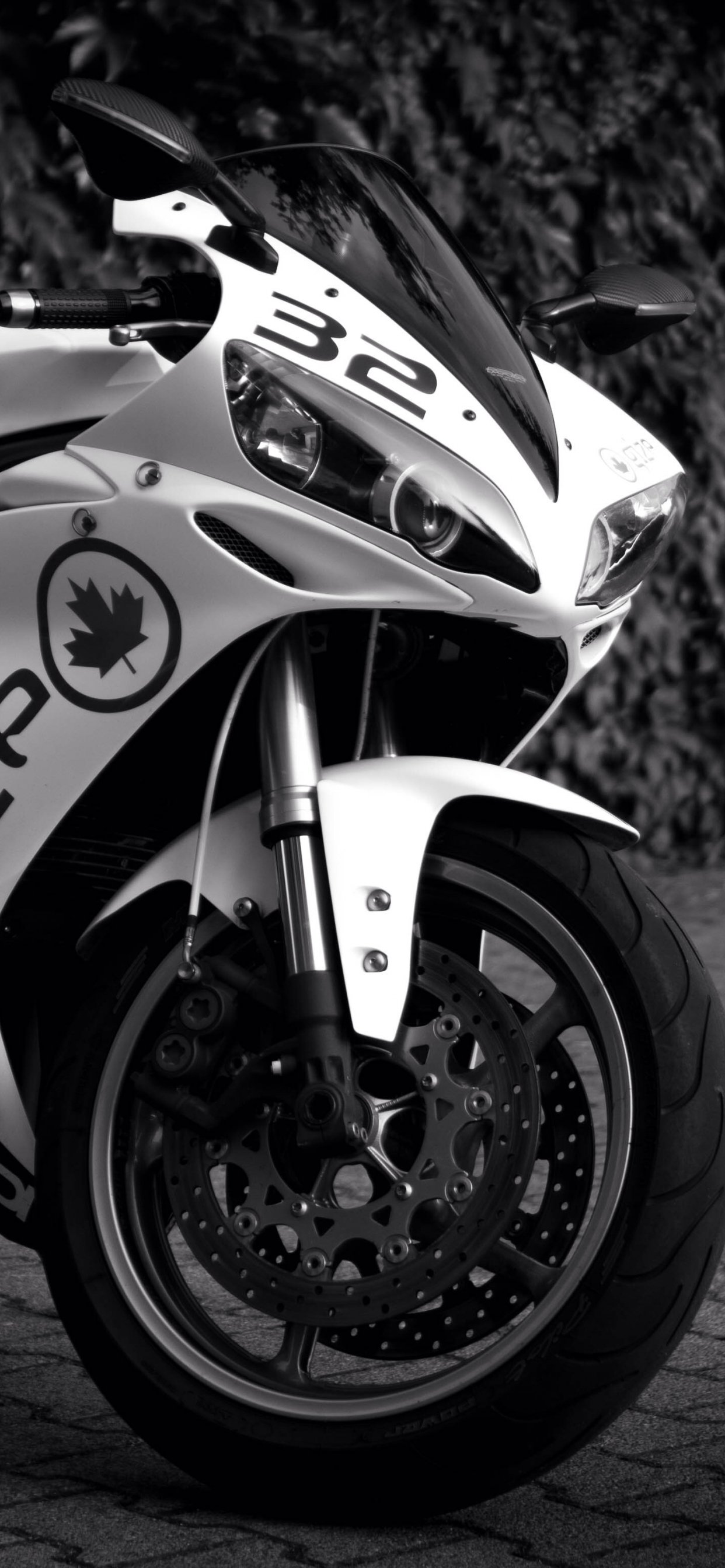 Wallpaper: Yamaha YZF-R1, black and white - 1242x2688