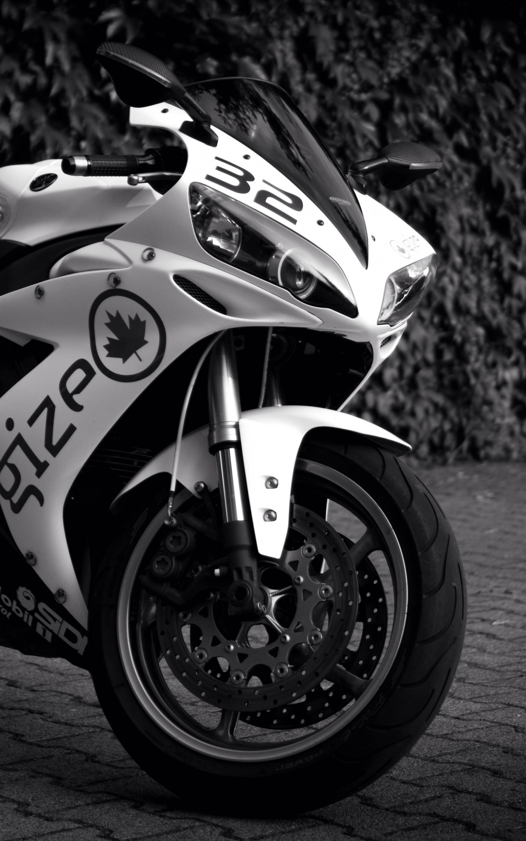 Wallpaper: Yamaha YZF-R1, black and white - 1752x2800