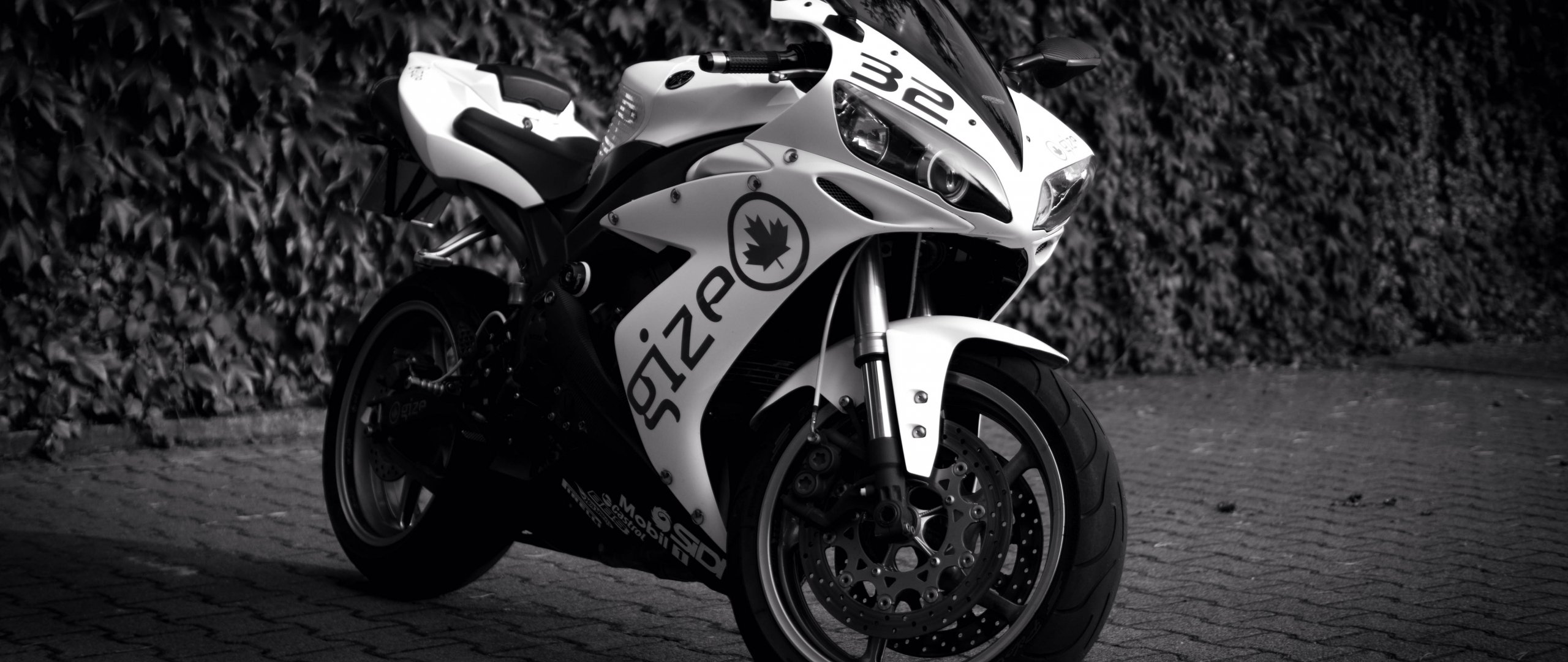 Wallpaper: Yamaha YZF-R1, black and white - 2560x1080