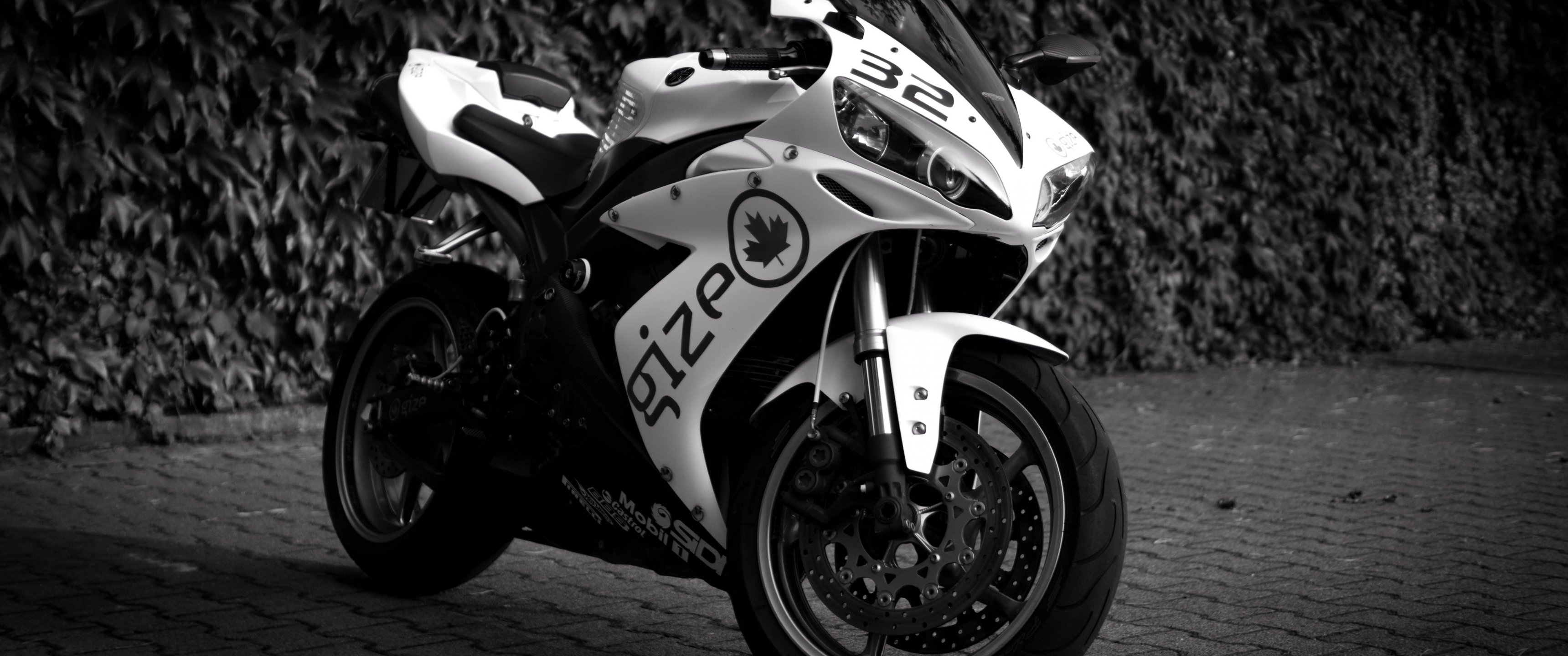 Wallpaper: Yamaha YZF-R1, black and white - 3440x1440