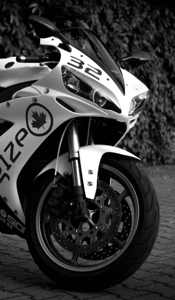 Wallpaper: Yamaha YZF-R1, black and white - 600x1024