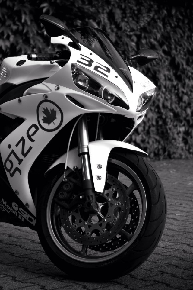 Wallpaper: Yamaha YZF-R1, black and white - 640x960