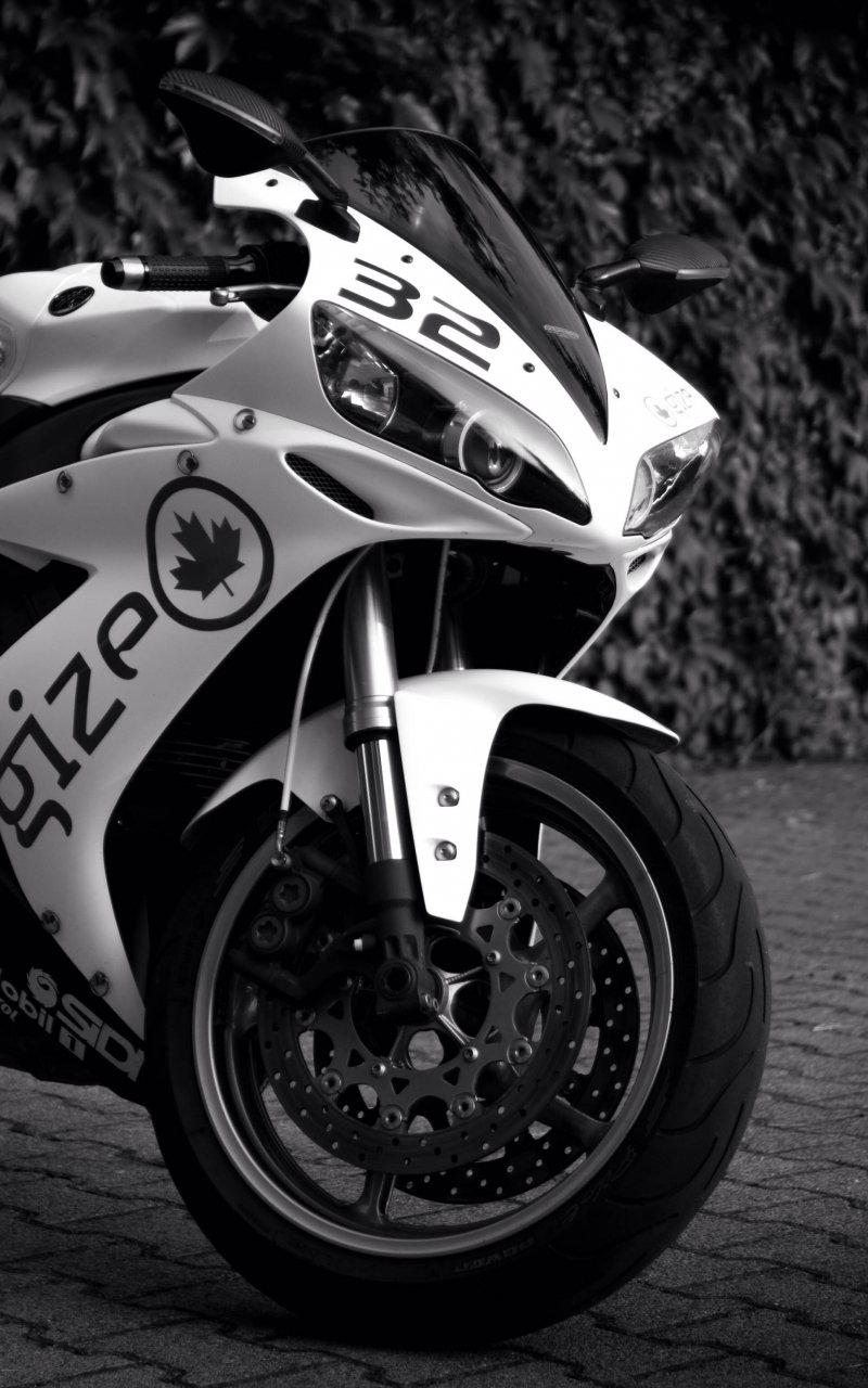 Wallpaper: Yamaha YZF-R1, black and white - 800x1280