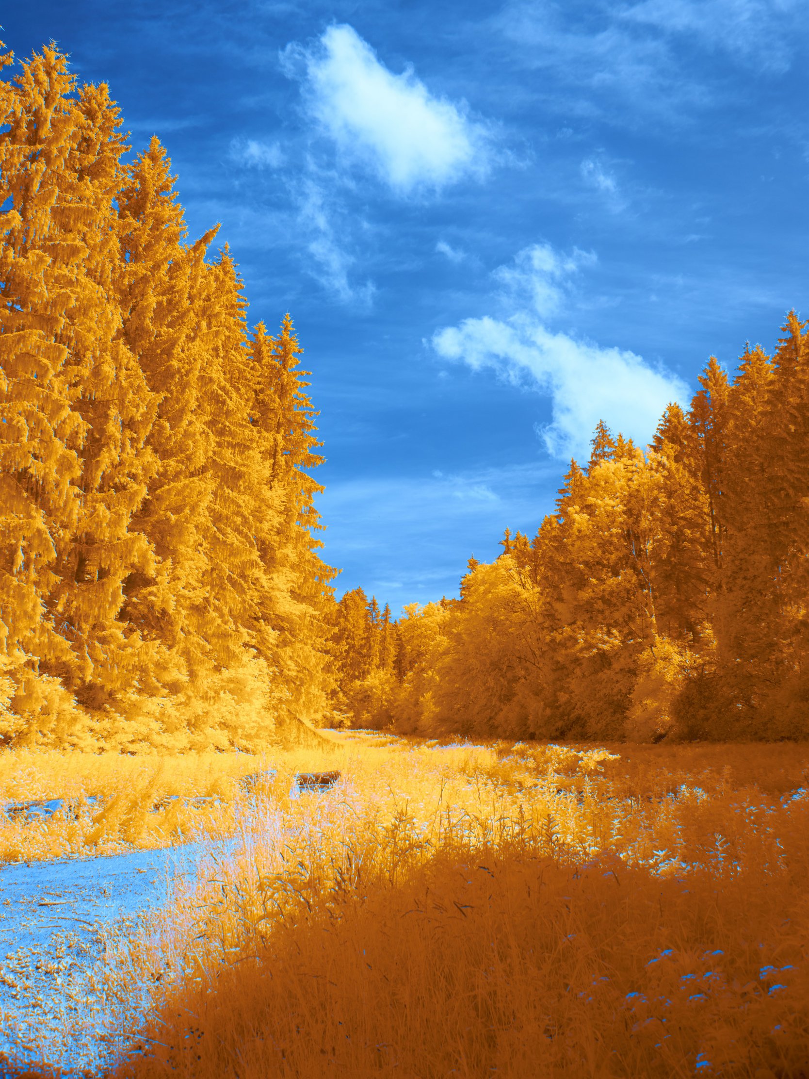 Wallpaper: forest, yellow, blue - 1668x2224