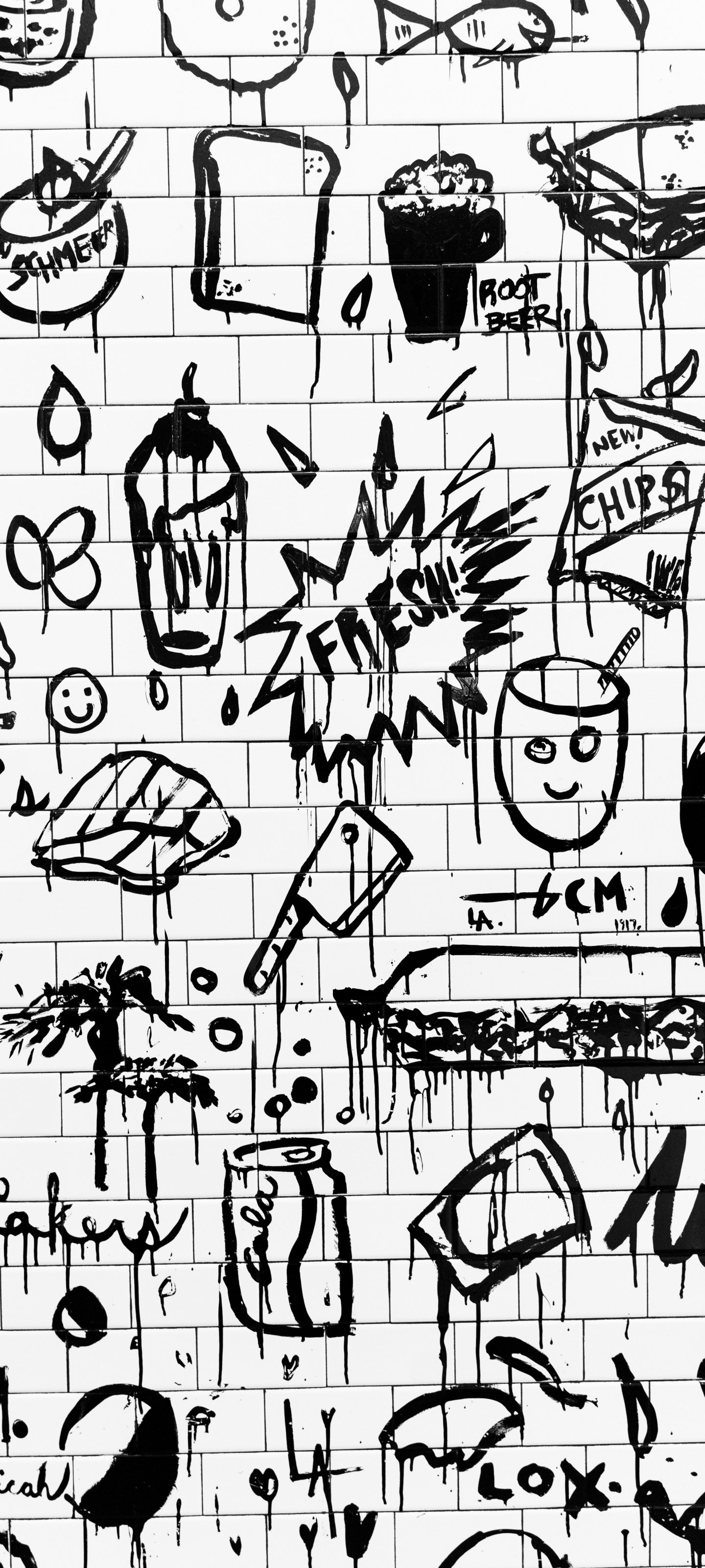 brick wall, wall, black and white Wallpaper 1440x3200