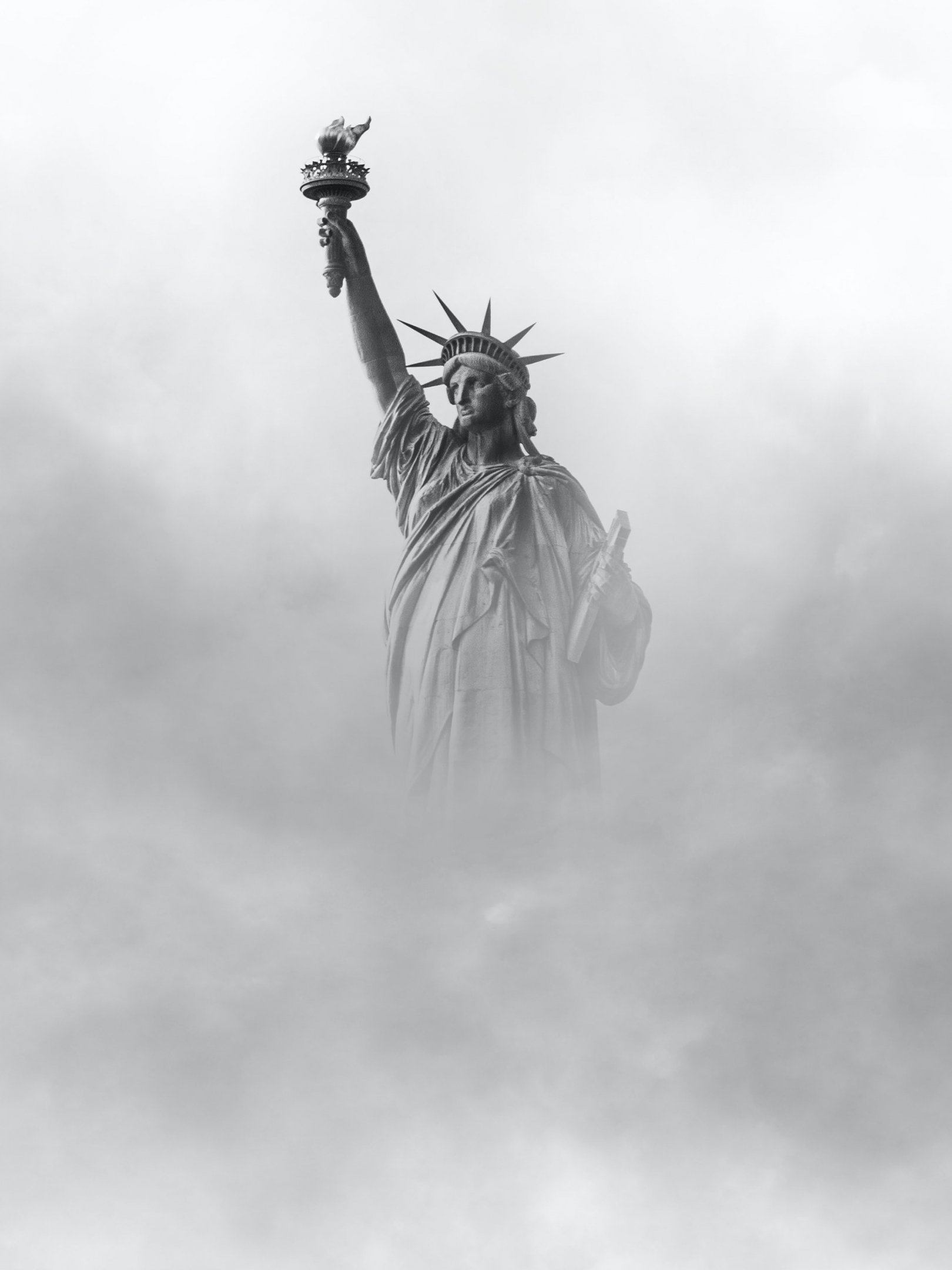 Wallpaper: Statue of Liberty, monument, black and white - 1620x2160