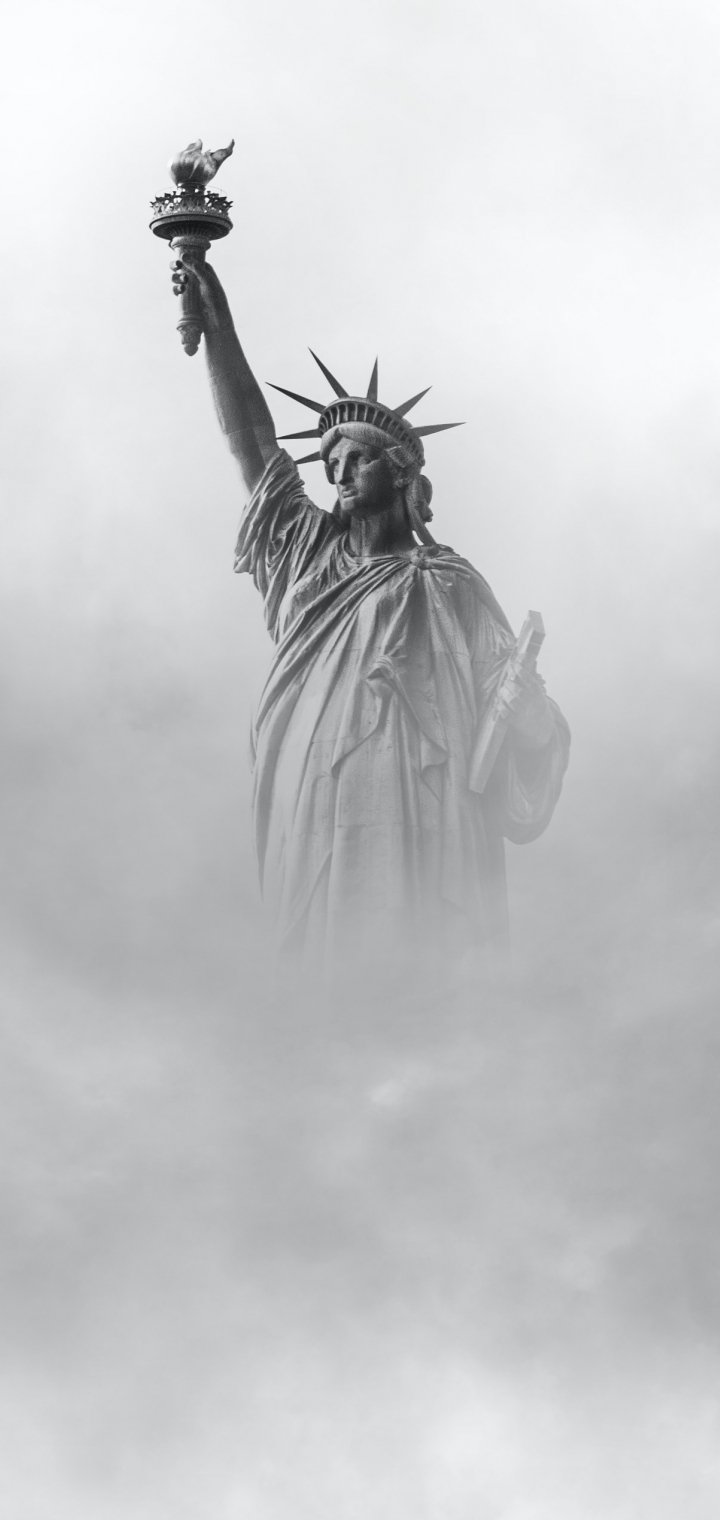 Wallpaper: Statue of Liberty, monument, black and white - 720x1520