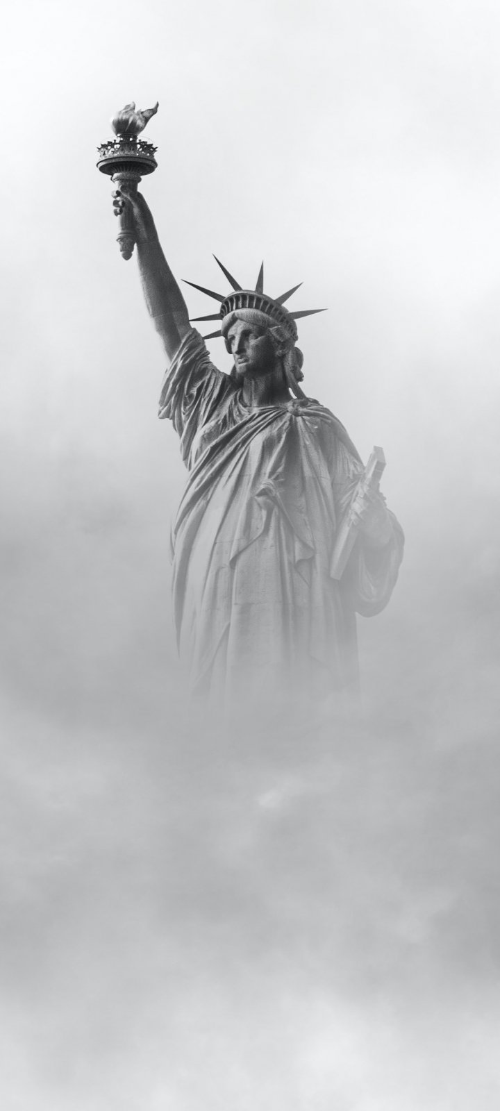 Wallpaper: Statue of Liberty, monument, black and white - 720x1600