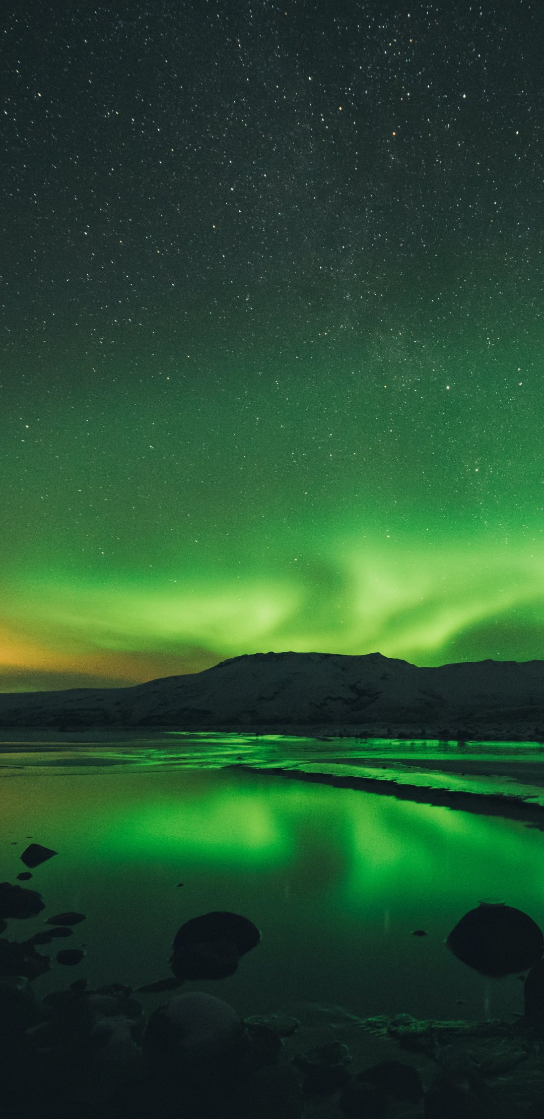Wallpaper: northern lights, landscape, green - 1080x2220