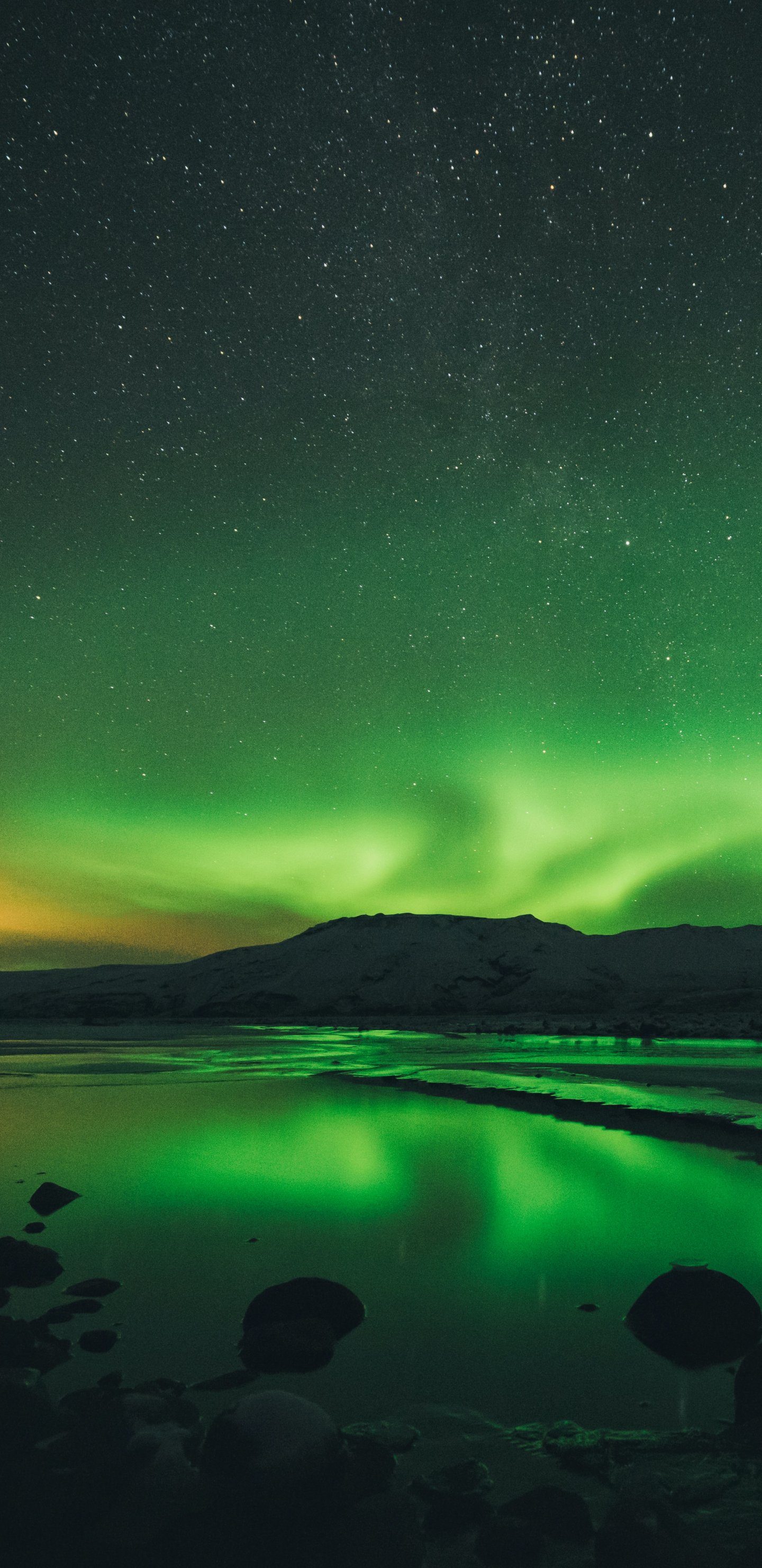Wallpaper: northern lights, landscape, green - 1440x2960