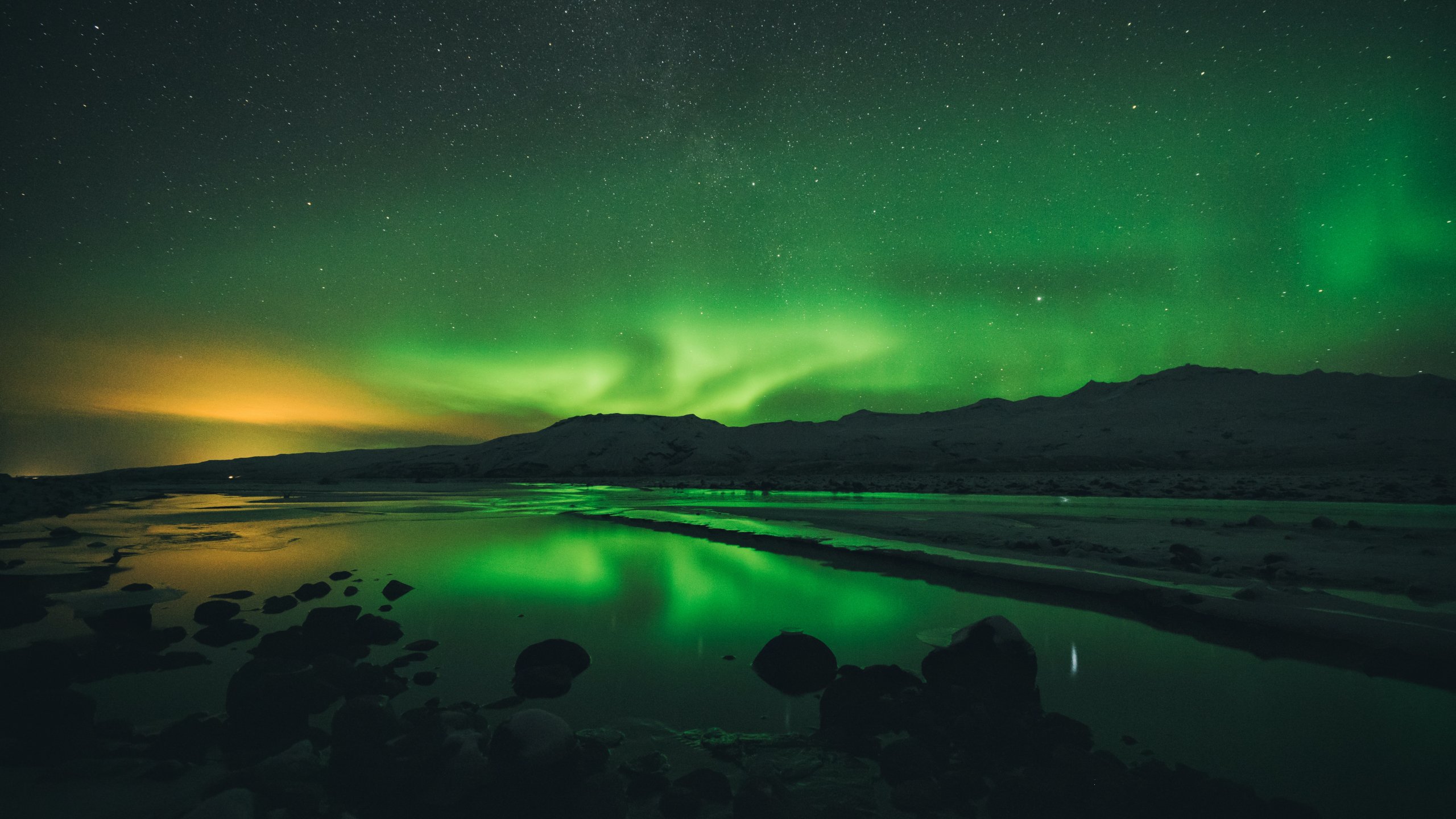 Wallpaper: northern lights, landscape, green - 2560x1440
