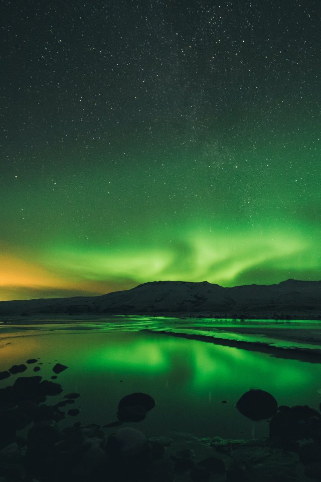 Wallpaper: northern lights, landscape, green - 640x960