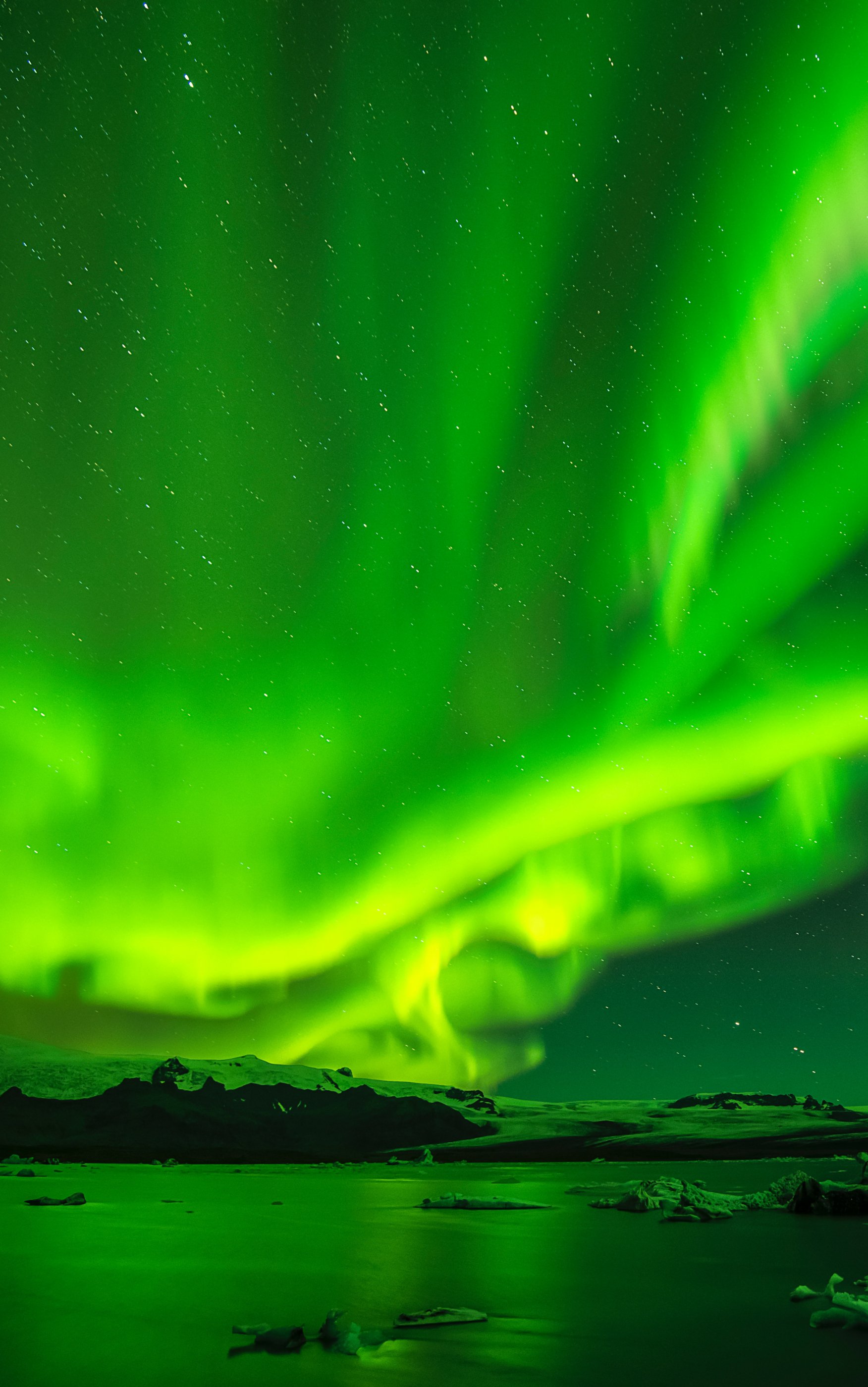 northern lights, night, green