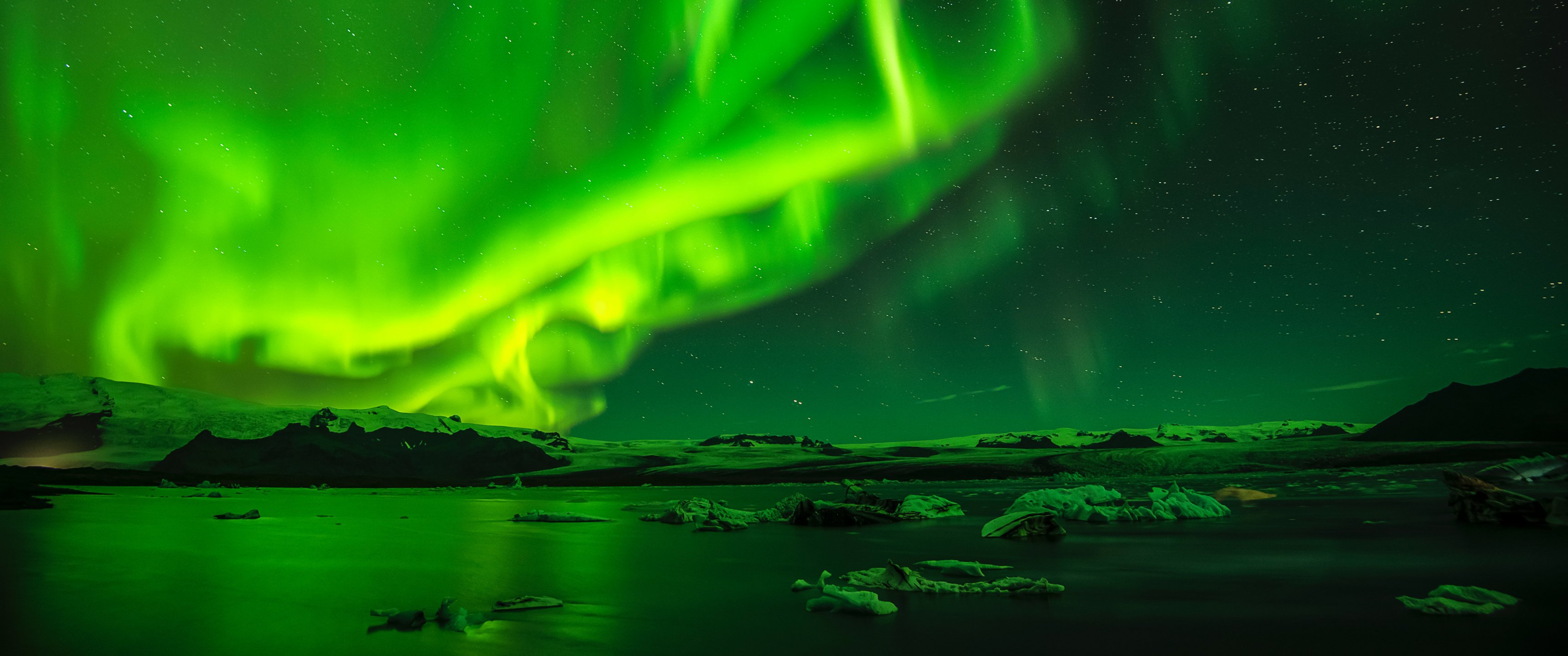 northern lights, night, green Wallpaper 3440x1440