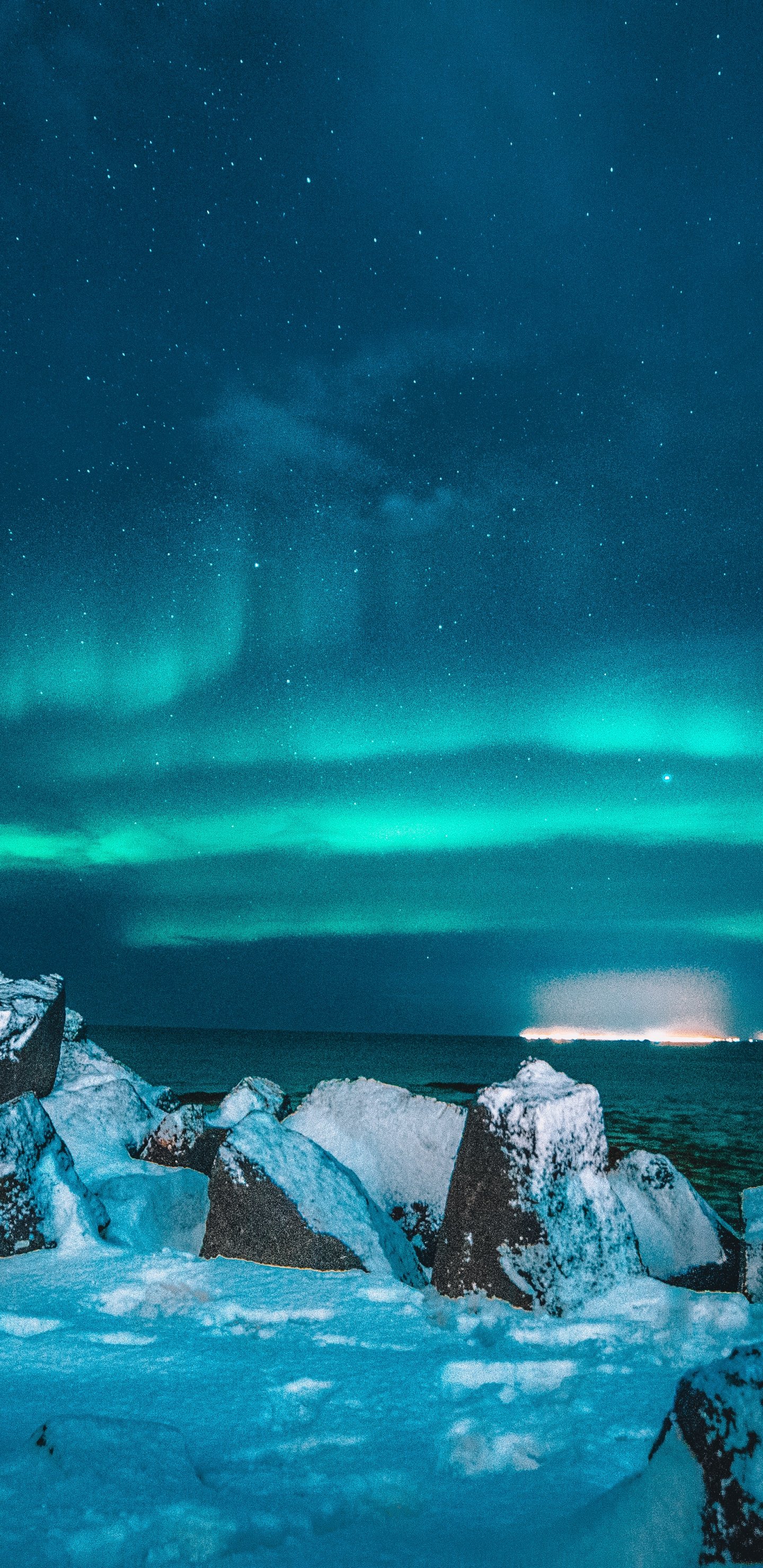 Wallpaper: northern lights, night, blue - 1440x2960