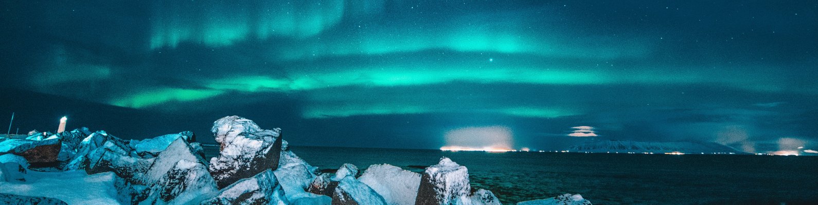 Wallpaper: northern lights, night, blue - 1590x400