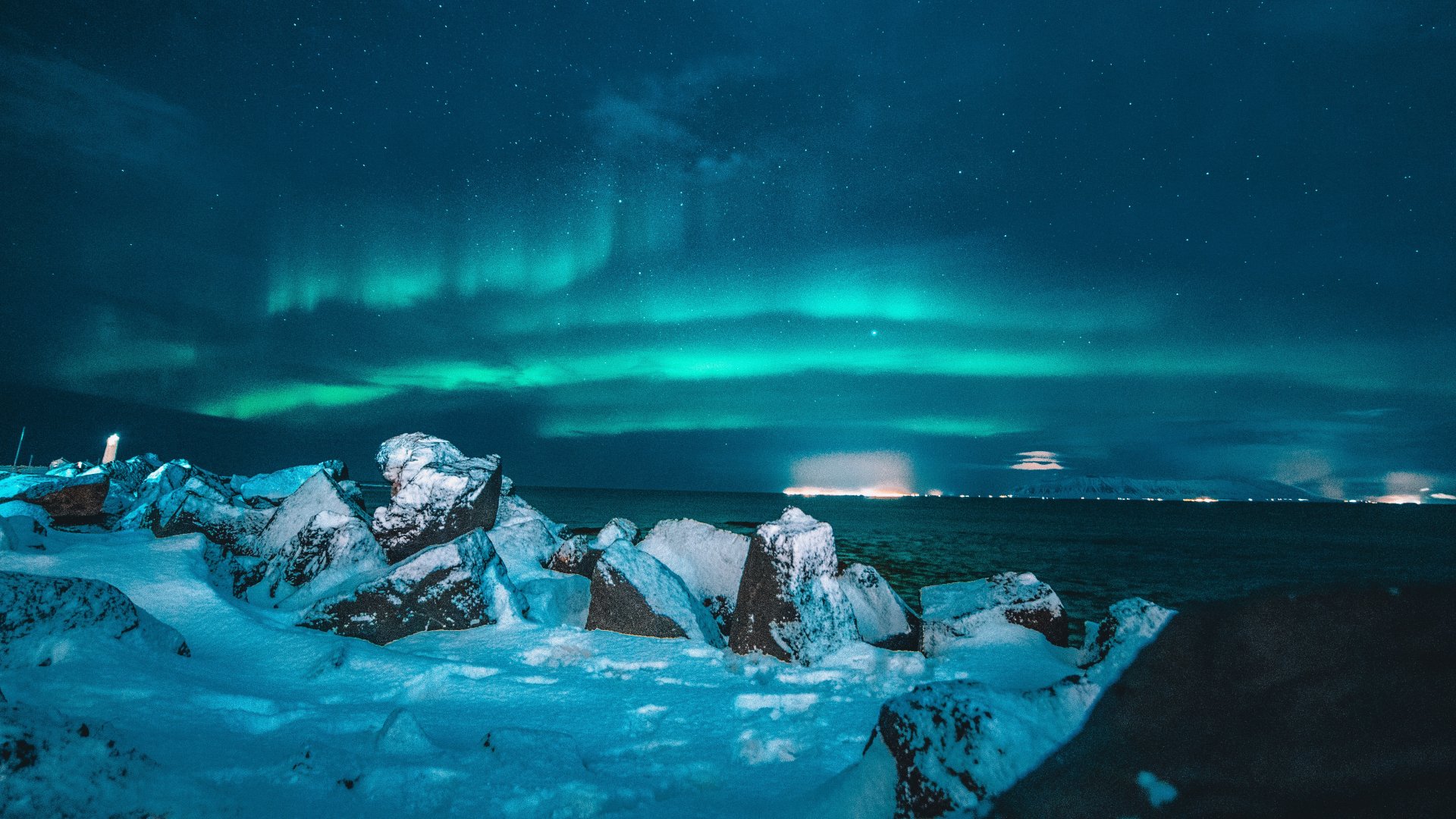 Wallpaper: northern lights, night, blue - 1920x1080
