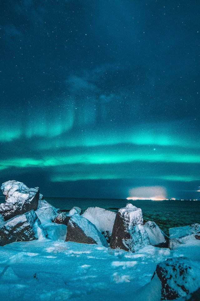 Wallpaper: northern lights, night, blue - 640x960