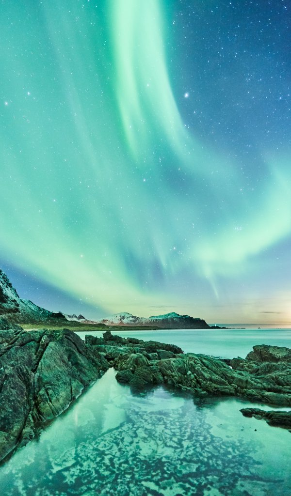 Wallpaper: northern lights, night, green - 600x1024