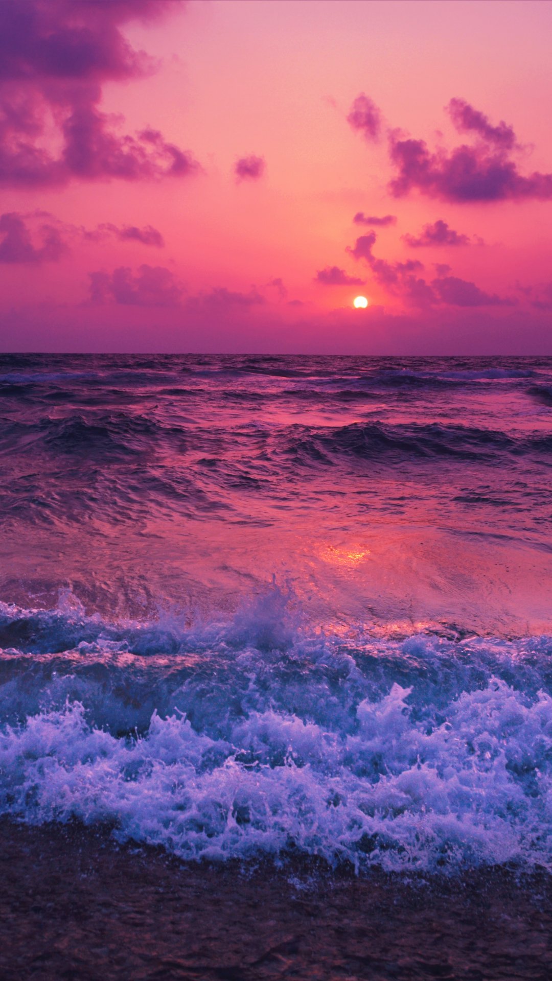 Wallpaper: sea, waves, pink sky - 1080x1920