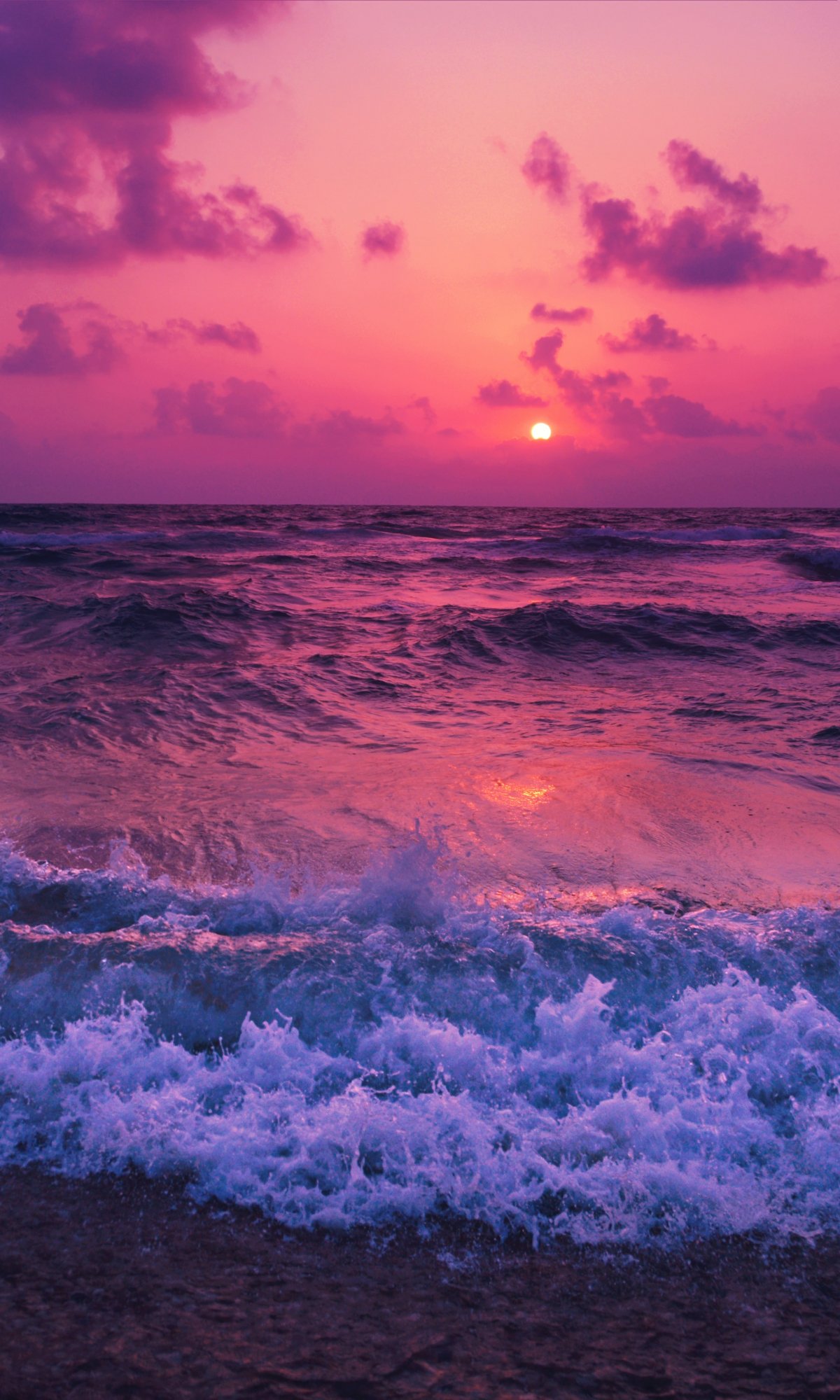 Wallpaper: sea, waves, pink sky - 1200x2000