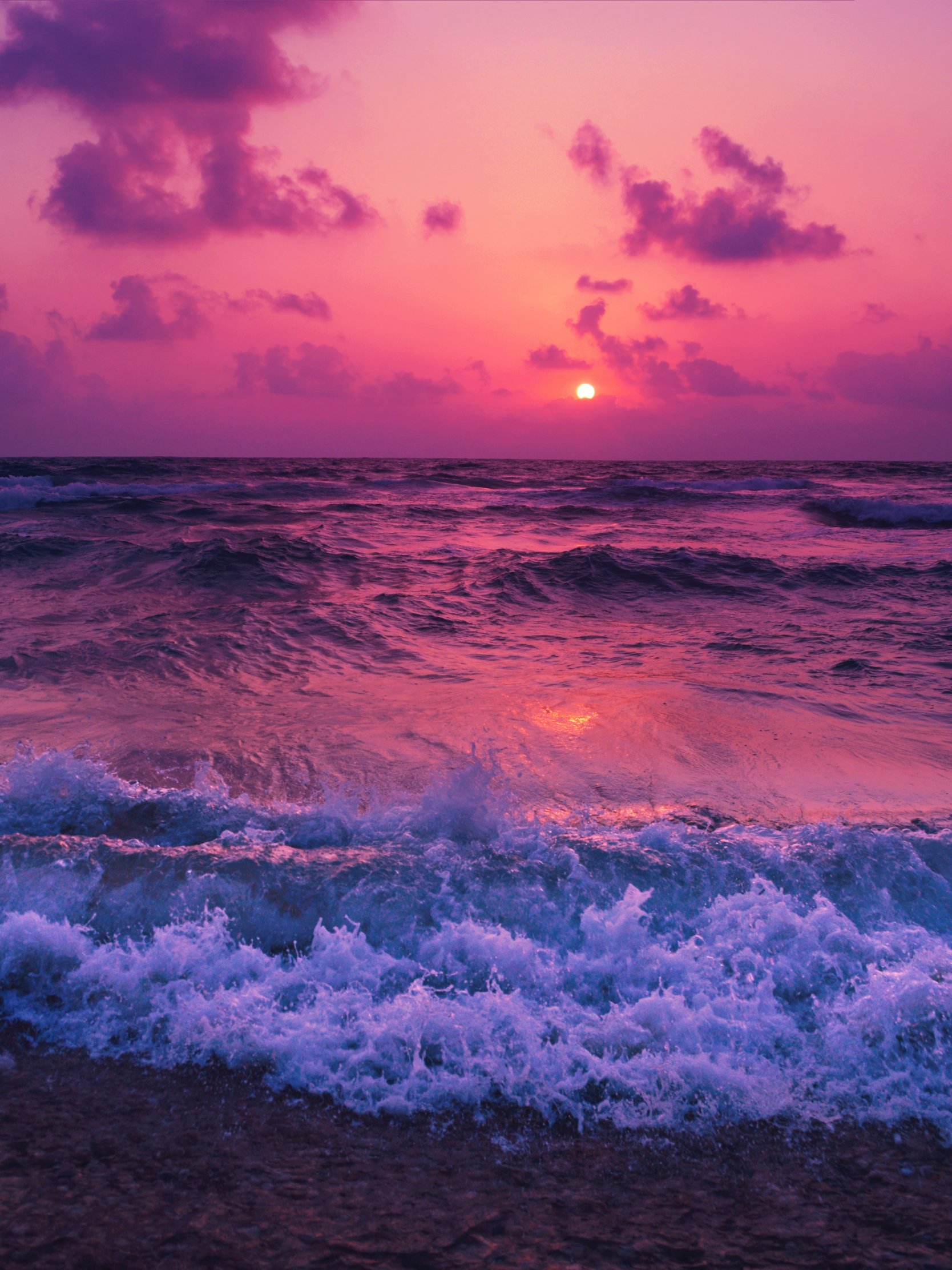 Wallpaper: sea, waves, pink sky - 1668x2224