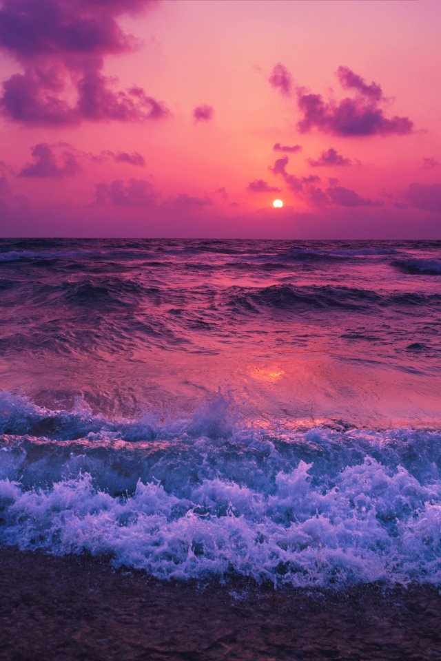 Wallpaper: sea, waves, pink sky - 640x960