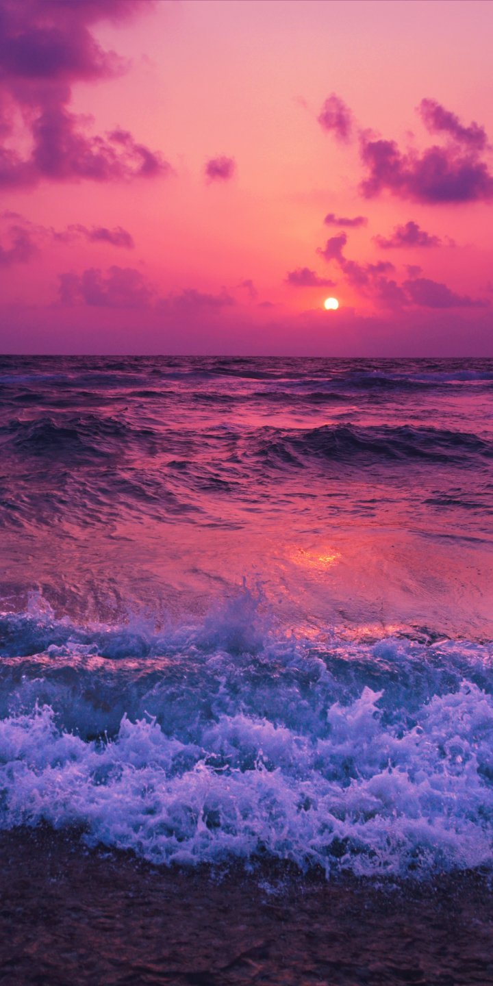 Wallpaper: sea, waves, pink sky - 720x1440